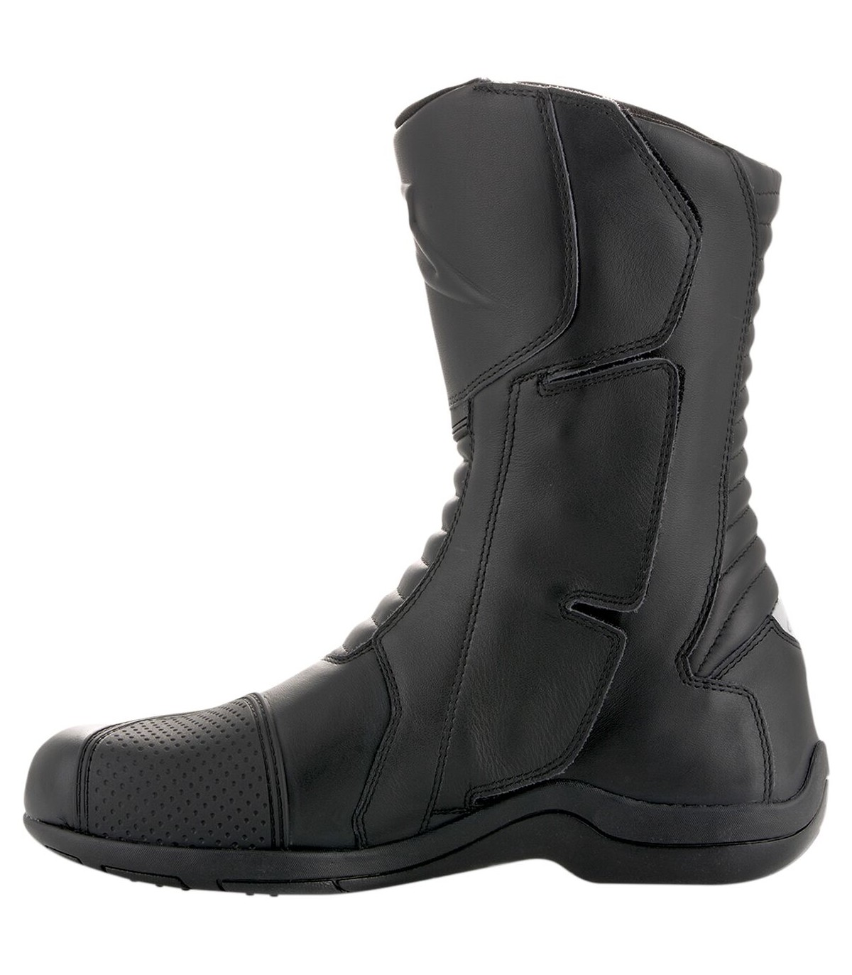 Andes v2 Drystar® BootsFully featured touring Drystar® boot for long distance road riding in a range of climactic conditions.Main upper material constructed from reinforced leather for improved comfort, durability and abrasion resistance.Full DRYSTAR® internal membrane ensures 100% waterproof performance and a high level of breathability.Extensive front and rear accordion constructed from microfiber to offer durability, comfort and excellent range of forward and back flex movement.Medial side entry opening / closing system with elastic-mounted zipper and wide flap hook-and-loop grip closure for convenience and precise, secure, fit. Incorporates large aperture opening to promote easier entry and facilitate more convenient removal of boot.Strategically positioned and the toe box from abrasion and incorporates technical texturing for grip.Advanced TPU shift pad protects the upper sole injected in polypropylene and includes shank reinforcement for structural support and stability.Removable anatomic advanced EVA footbed provides arch support and high levels of comfort.Rear reflective insert for improved visibility of rider.Alpinestars exclusive vulcanized rubber compound sole promotes improved feel and grip, water dispersion and durability.Contoured insole advanced TPR shin plate and TPR ankle protector for critical protection without impeding flexibility.