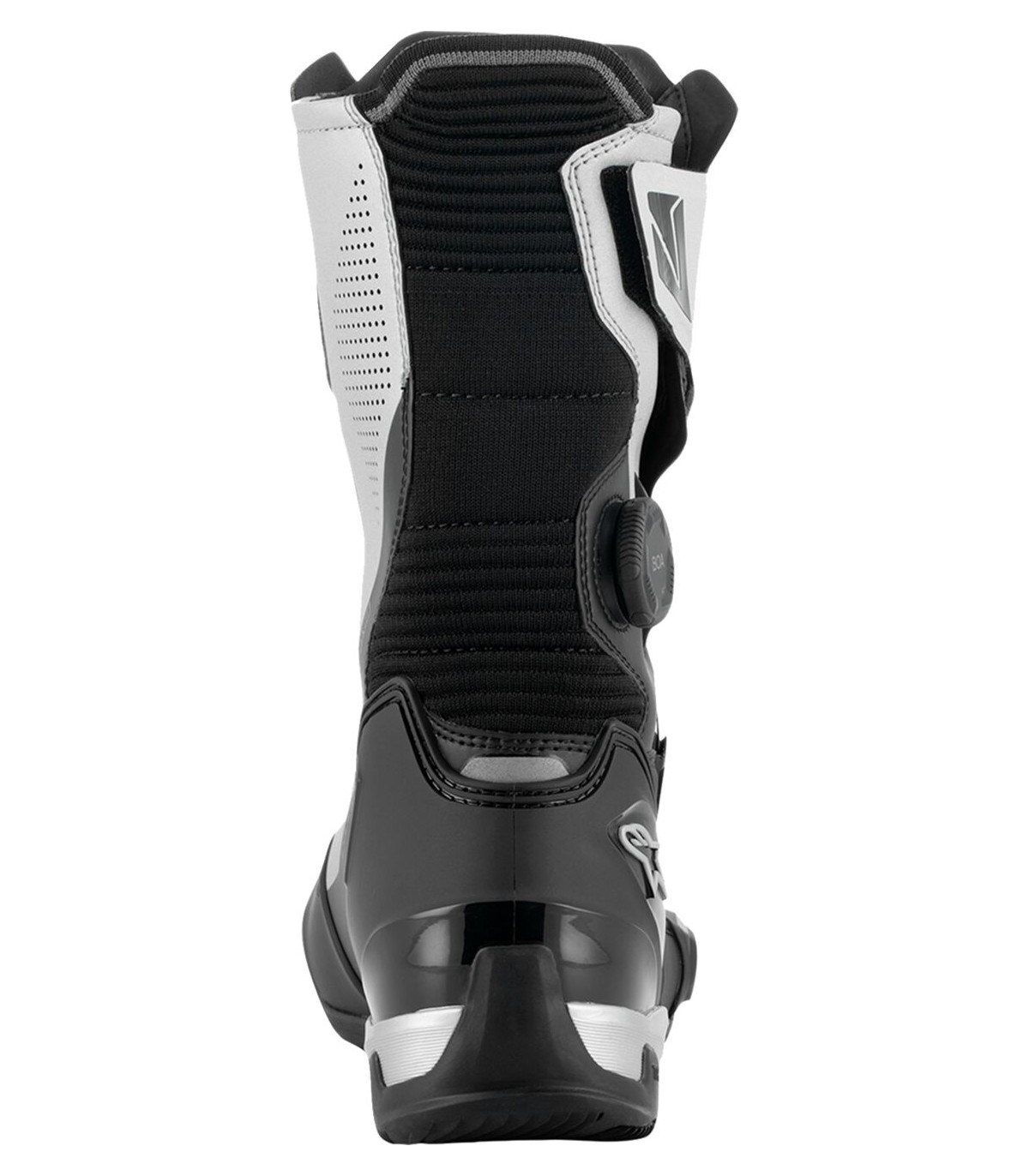 SP-X BOA BootsSP-X boots are a sleek sport boot designed to fit under tech riding pants and provide superior walking capabilityOptimized for the sport and sport touring rider, the SP-X are compact, mid-height boots with premium levels of protection and comfort on and off the bikeThe upper is constructed from a combination of Rideknit® material and knitted mesh, plus seamless thermo-welded partsThe lower features a TPU heel counter, toe slider, and the Alpinestars Transversal Protection Frame (TPF) on the sole, allowing for high levels of protection against impacts and any bending or twistingAdditionally, the sole also features an all-new design with an asymmetric back heel to facilitate the rider's natural stride and promote off-bike stabilityFor protection, the SP-X has an integrated shin impact protector, dual-density ankle discs, plus TPU shift pad and toe slider reinforcementFor comfort, the knitted areas on the front and back flex points offer great freedom of movement, while the PU midsole with integrated double cushioned heel compound and removable OrthoLite® insock, provide great walking comfortIn and out is facilitated by a medial zip combined with the BOA speed lace system for compact and precise closureSP-X boots are perfect for those sport riders looking for coverage and protection but without the full race boot, over the pant look