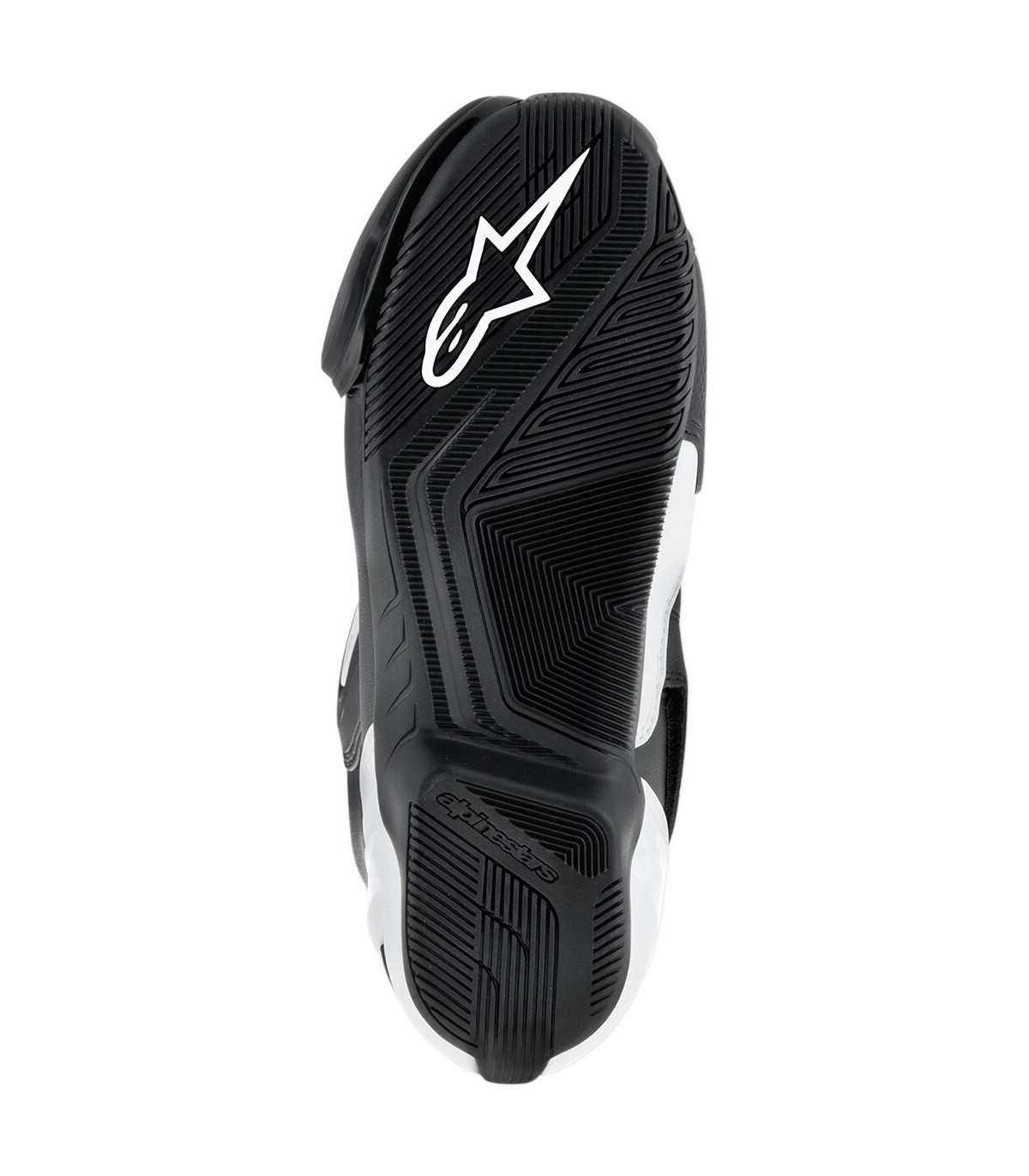 SMX-S BootsDurable microfiber upper for comfort and fit and incorporating a host of advanced protective features, inside and out, the SMX-S Boot features an ergonomic forefoot shaping, a breathable lining and Alpinestars’ exclusive rubber compound sole for optimized levels of support and performanceDurable, high-tech micro-fiber upper construction offering a high level of flexibilityDouble injected Polyurethane (PU) shields the shin, ankle, calf, toe and heel from impact while minimizing abrasionInner protection is given by a double injected panel connected to the heel counter, hidden beneath the outer shell and running up the outer ankleQuick drying polyamide lining is laminated with open cell foam and high density contoured padding to absorb shocks to the foot areaExclusive compound rubber sole features structured shank reinforcement for added support to the arch areaInterchangeable bi-injected PU toe slider with snap-in assemblyInnovative air vents at the ankle, heel and forefoot are covered with a specially designed mesh to provide unmatched levels of rider comfortLarge ‘throat’ profile instep and Achilles flex bellows for superior flex and comfortMTP mesh liner and anatomical, removable, PU Foam foot bed keeps the foot cool and comfortableInnovative inner (medial) side entry opening/closure system that features an elastic mounted zipper with an extra wide Velcro® flap, to give a precise, comfortable fit and wide opening aperture for ease of accessHighly ergonomic last for ultra precise fit