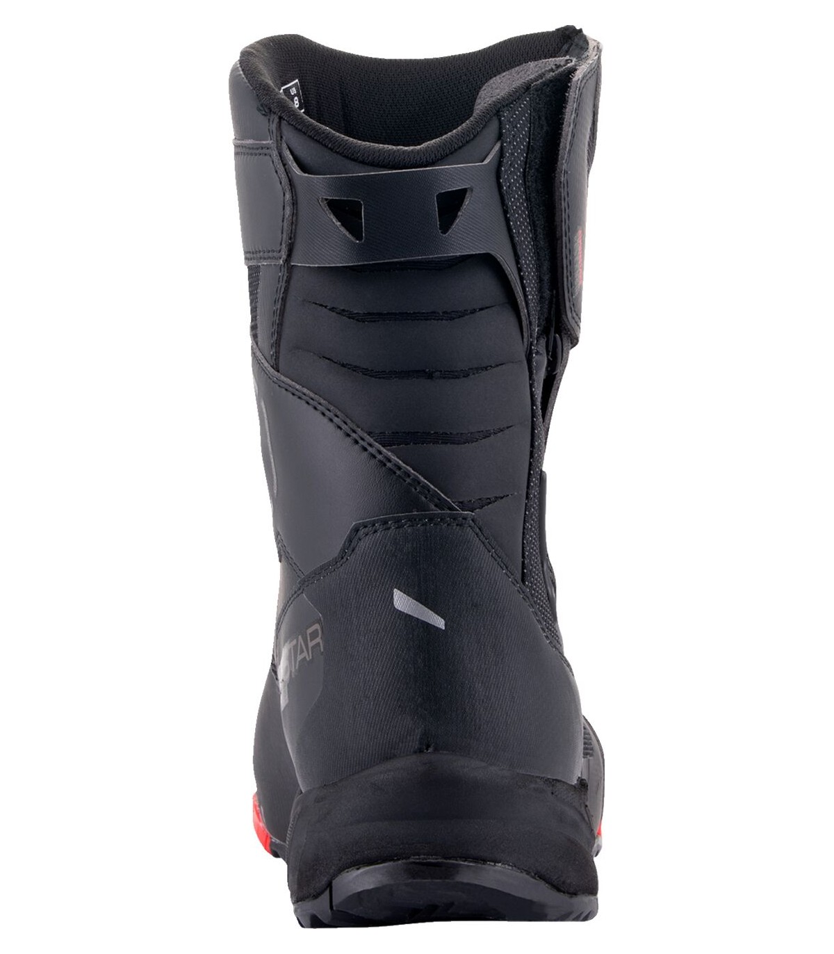 RT-7 Drystar® BootsRT-7 has a full Drystar® membrane for 100% guaranteed waterproof performance and breathabilityTechnical modern upper constructed with an advanced blend of microfiber and synthetic high resistance textile laminated by a seamless PU for enhanced breathability Alpinestars integrated Transversal Protection Frame (TPF), protects the foot while delivering the necessary support on the footrest without compromising the front foot flexion for superior walking comfortReinforced heel counter and toe box, with an additional shift pad extra later and reinforced shin area to protect against impactsThe boot opening is managed by lateral zip mounted elasticated panel, covered by a hook and loop gusseted flap, to protect the zipper and keep free the boot flexionDynamic design shift pad in 3D printed PU technology for effective upper foot protection