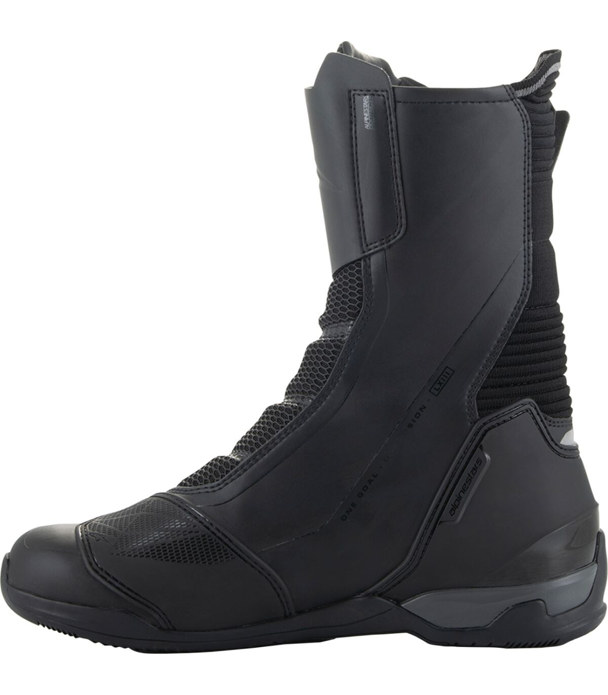 SP-X BOA Drystar® BootsErgonomically optimized touring design, the mid-length SP-X Boa Drystar® Boot® is engineered to deliver the highest levels of comfort when covering big miles in the saddleWaterproof and breathable Drystar® membrane guarantees exceptional wet weather performanceWith its grippy, rugged sole, this boot is built to excel in all conditions and terrains, on and off the bikeLateral side entry system incorporates BOA Speed Lace System technology for a quick, precise, and secure closureMain upper is constructed with a combination of advanced microfiber, knitted mesh and co-injected Thermoplastic Polyurethane (TPU) with Lycra for the optimum blend of comfort, breathability and performanceEquipped with a Drystar® liner for proven all-weather performance, remaining waterproof while still being highly breathableRubber sole utilizes a special compound that provides textured grip and excellent absorption, and features an integrated support shank for an enhanced sole rigiditySports sole design incorporates a high flex inner structure (lasting insole) for superior walking comfortDesign of shift pad features TPU technologies for superior upper foot protectionTPU sliders are strategically positioned on lateral toe-box and on lateral calf for optimum flexion and protectionTPU heel counter design ensures impact protection in a critical area while also offering additional support and securityDual density ankle protectors are strategically positioned between the upper and padded lining to provide strategic protection in key areasInternal shin reinforcement is layered under the upper for impact protection in a critical area