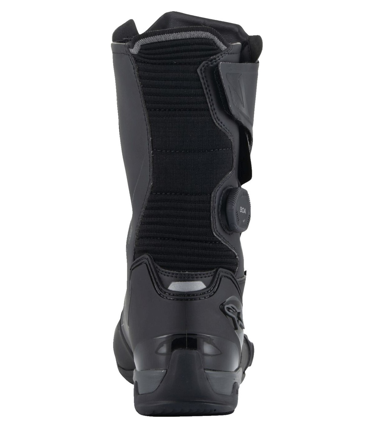 SP-X BOA Drystar® BootsErgonomically optimized touring design, the mid-length SP-X Boa Drystar® Boot® is engineered to deliver the highest levels of comfort when covering big miles in the saddleWaterproof and breathable Drystar® membrane guarantees exceptional wet weather performanceWith its grippy, rugged sole, this boot is built to excel in all conditions and terrains, on and off the bikeLateral side entry system incorporates BOA Speed Lace System technology for a quick, precise, and secure closureMain upper is constructed with a combination of advanced microfiber, knitted mesh and co-injected Thermoplastic Polyurethane (TPU) with Lycra for the optimum blend of comfort, breathability and performanceEquipped with a Drystar® liner for proven all-weather performance, remaining waterproof while still being highly breathableRubber sole utilizes a special compound that provides textured grip and excellent absorption, and features an integrated support shank for an enhanced sole rigiditySports sole design incorporates a high flex inner structure (lasting insole) for superior walking comfortDesign of shift pad features TPU technologies for superior upper foot protectionTPU sliders are strategically positioned on lateral toe-box and on lateral calf for optimum flexion and protectionTPU heel counter design ensures impact protection in a critical area while also offering additional support and securityDual density ankle protectors are strategically positioned between the upper and padded lining to provide strategic protection in key areasInternal shin reinforcement is layered under the upper for impact protection in a critical area