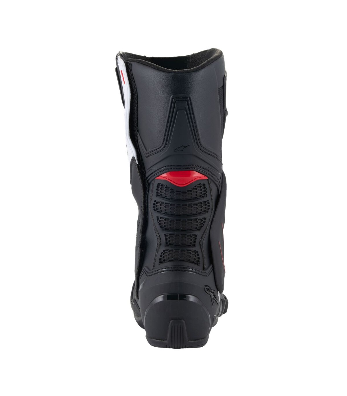 SMX-6 V3 BootsPacked with a host of innovative safety and protective features, SMX-6 V3 is the ultimate track and performance riding all-rounder, and incorporates race-derived technology and materials to give riders a crucial performance edge on the track, and the streetAdvanced microfiber upper construction for lightweight high performance protection against abrasion and superb levels of flexibilityFront flex and back flexion zones are constructed with textile over-injected with a soft Thermoplastic Polyurethane (TPU) for enhanced impact abrasion while also promoting a natural forwards and backwards movementAlpinestars unique ankle brace protection system provides a bio-mechanical support and protection between the lateral top calf, the shin and ankle, for superior ankle articulation, while also limiting hyper-torsion, hyper-extension and hyper-flexion, as well as providing Achilles and ankle impact protectionAlpinestars Lace-Lock System is constructed from an advanced polymer resin for a guaranteed quick, precise and secure closureEquipped with a TPU shifter zone for superior protection on the lower medial sideStrategically positioned, race-derived TPU shin plate protector delivers superior impact and abrasion resistanceDual density TPU ankle protectors are strategically positioned between the upper and padded lining to provide the strategic protection in key areasReplaceable, dual density TPU toe slider with screw-in assembly provides comprehensive protective coverage around the outer toe area while still being supremely flexible for walking comfortReplaceable heel slider and external side heel slider are strategically positioned for optimum shock dissipation and absorption, while promoting sliding in the event of an accident