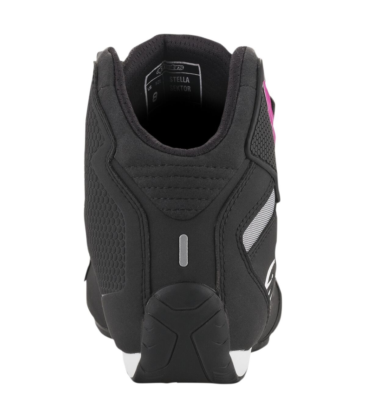 Stella Sektor ShoesSpecific women's foot-shapingUpper is constructed from a microfiber which is lightweight, durable and abrasion resistant3D ankle protection for an improved fit and a lighter weightOriginal speed lace systemAnkle strap provides secure closure and fits flush within upper ankle polymer protection panel to ensure streamlined finishFlex areas on heel and instep for enhance comfort when walkingLining is breathable 3D mesh with a microfiber suede anti-slip surface inside at the heelInternal toe box and heel counter guards positioned under the shoe outer chassisLightweight rubber sole with textured grip design and integrated support shank for rigidityReplaceable anatomical EVA footbed with stretch fabric top linerMetallic mesh airflow vent