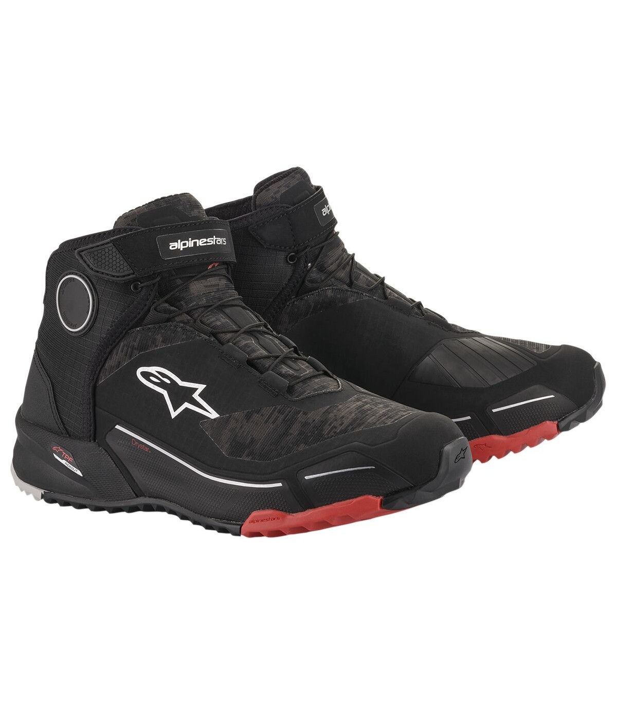 CR-X Drystar® Riding ShoesDrystar® membrane offers effective weather protection in wet conditionsThe sole unit ‘DROP’ (or, the off-set between heel and toe) is set at 9 mm (many running shoes have a 9 mm drop) to ensure a smooth heel-to-toe transition when walkingFeatures an EVA midsole provides for excellent all-day underfoot comfortForefoot Flex grooves are engineered into the midsole for enhanced forefoot comfort (the grooves promote flexing in the forefoot area)Full-length Thermoplastic Polyurethane (TPU) inner sole plate for superior riding protection and a dynamic heel-to-toe transition when walkingAsymmetric outsole stud configuration provides excellent levels of grip and abrasion resistanceOil resistant dual rubber compound provides optimized grip on unclean/slippery surfacesRemovable Ortholite insock provides long lasting comfort and prevents over heating thanks to the Open Cell PU compoundHidden asymmetric lateral and medial TPU ankle discs for effective but discreet ankle protectionLightweight inner bootie with minimal construction design for a comfortable, glove-like fitTongue with bellows construction has been designed to remain in position when riding for a snug, secure fitGear shift zone features a highly abrasive-resistant TPU layer for enhanced durabilityInternal EVA layer sandwiched between outer and inner materials reduces pressure on the foot in the gear shift area, thus ensuring superior rider comfort