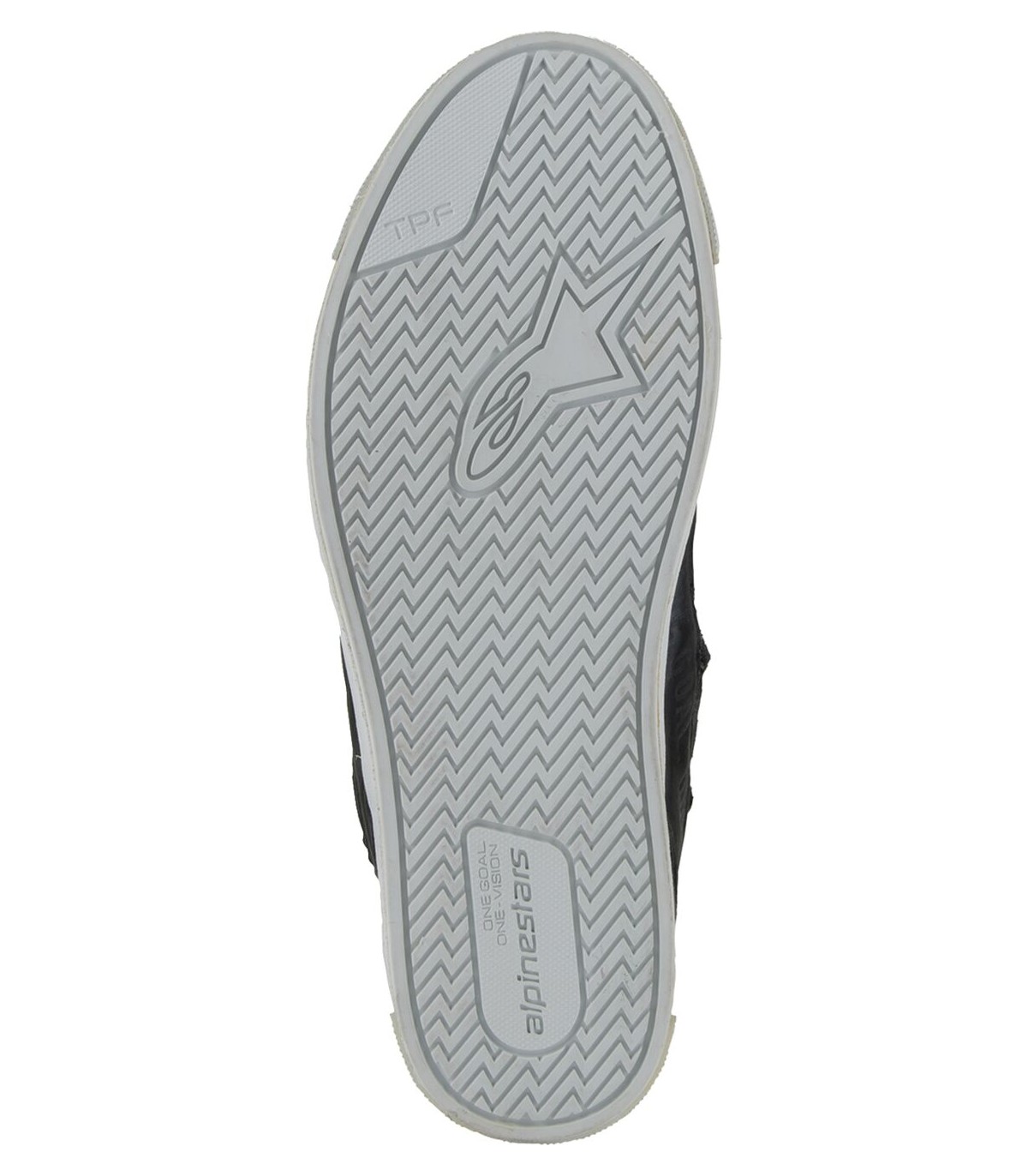 Stated ShoesMain upper constructed from Nubuck, canvas, and split suede for the optimal blend of durability and comfortSplit suede toebox for enhanced durabilityClassic lace closure at the front with a lateral zip for a secure, precise fitAnkle collar is constructed with soft knitted mesh for enhanced rider comfortDual layer midsole support for optimal comfort and supportAlpinestars vulcanized rubber urban sole with bandage for sole for optimal grip and comfort, on and off bikeOrtholite® insole delivers long-term cushioning and high level of breathability and comfortIntegrated dual density ankle disks for impact protection with external multi-layer padding for additonal coverageAlpinestars Transversal Protection Frame (TPF) protects the foot while delivering the necessary support on footrest without compromising front foot flexion for superior walking comfort