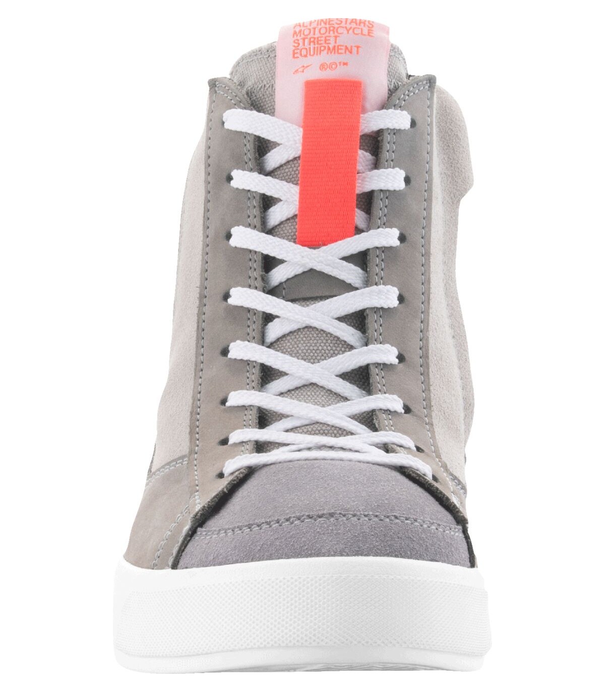 Stated ShoesMain upper constructed from Nubuck, canvas, and split suede for the optimal blend of durability and comfortSplit suede toebox for enhanced durabilityClassic lace closure at the front with a lateral zip for a secure, precise fitAnkle collar is constructed with soft knitted mesh for enhanced rider comfortDual layer midsole support for optimal comfort and supportAlpinestars vulcanized rubber urban sole with bandage for sole for optimal grip and comfort, on and off bikeOrtholite® insole delivers long-term cushioning and high level of breathability and comfortIntegrated dual density ankle disks for impact protection with external multi-layer padding for additonal coverageAlpinestars Transversal Protection Frame (TPF) protects the foot while delivering the necessary support on footrest without compromising front foot flexion for superior walking comfort