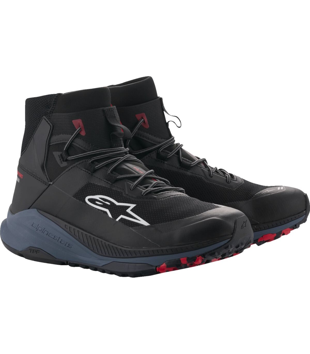 Speedforce XR ShoesRiding shoe with look and feel of a running sneaker that offers versatility and protection. Main upper construction combines textile with seamless PU with reinforced toe and heel counter. Heel counter made in microfiber for durability.Removable OrthoLite® insock offers long lasting comfort on the instep and around the ankle while preventing over heating due to the Open Cell PU compound.Tongue cover made of elasticated material featuring integrated pocket to protect the lace closure. Collar area is elastic for comfort and better fit for different ankle sizes while rear back collar is made from engineered textile material featuring integrated rear puller for easy entry. 3D mesh lining offers high breathability and anti-sliding micro suede on heel.Sole construction features heel dampening EVA pad and integrated Alpinestars transversal protection frame (TPF) technology using forefoot front transversal metal bar.TPU shanks and a PU midsole for transversal protection while offering walking comfort and roll, also featuring a protective carbon textile layer. Oil resistant rubber sole and high grip lugs design for improved grip and control.Medial dual density ankle protectors combined with TPR detail on lateral ankle provides strategic protection and flexibility in key areas. Internal toe box and heel counter reinforcement is layered under the upper for ergonomic design and protection.8mm drop for optimum walking comfort.