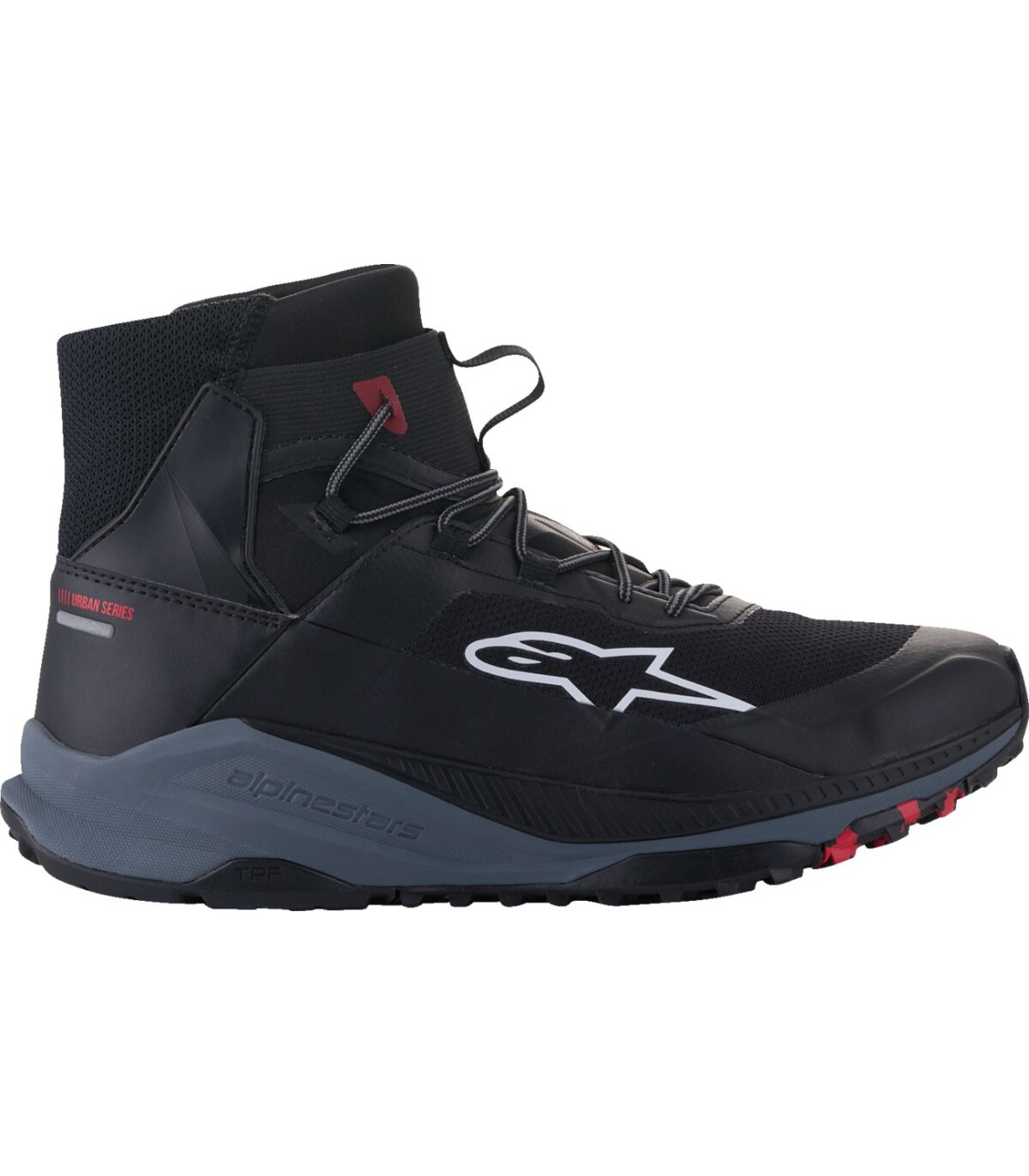Speedforce XR ShoesRiding shoe with look and feel of a running sneaker that offers versatility and protection. Main upper construction combines textile with seamless PU with reinforced toe and heel counter. Heel counter made in microfiber for durability.Removable OrthoLite® insock offers long lasting comfort on the instep and around the ankle while preventing over heating due to the Open Cell PU compound.Tongue cover made of elasticated material featuring integrated pocket to protect the lace closure. Collar area is elastic for comfort and better fit for different ankle sizes while rear back collar is made from engineered textile material featuring integrated rear puller for easy entry. 3D mesh lining offers high breathability and anti-sliding micro suede on heel.Sole construction features heel dampening EVA pad and integrated Alpinestars transversal protection frame (TPF) technology using forefoot front transversal metal bar.TPU shanks and a PU midsole for transversal protection while offering walking comfort and roll, also featuring a protective carbon textile layer. Oil resistant rubber sole and high grip lugs design for improved grip and control.Medial dual density ankle protectors combined with TPR detail on lateral ankle provides strategic protection and flexibility in key areas. Internal toe box and heel counter reinforcement is layered under the upper for ergonomic design and protection.8mm drop for optimum walking comfort.
