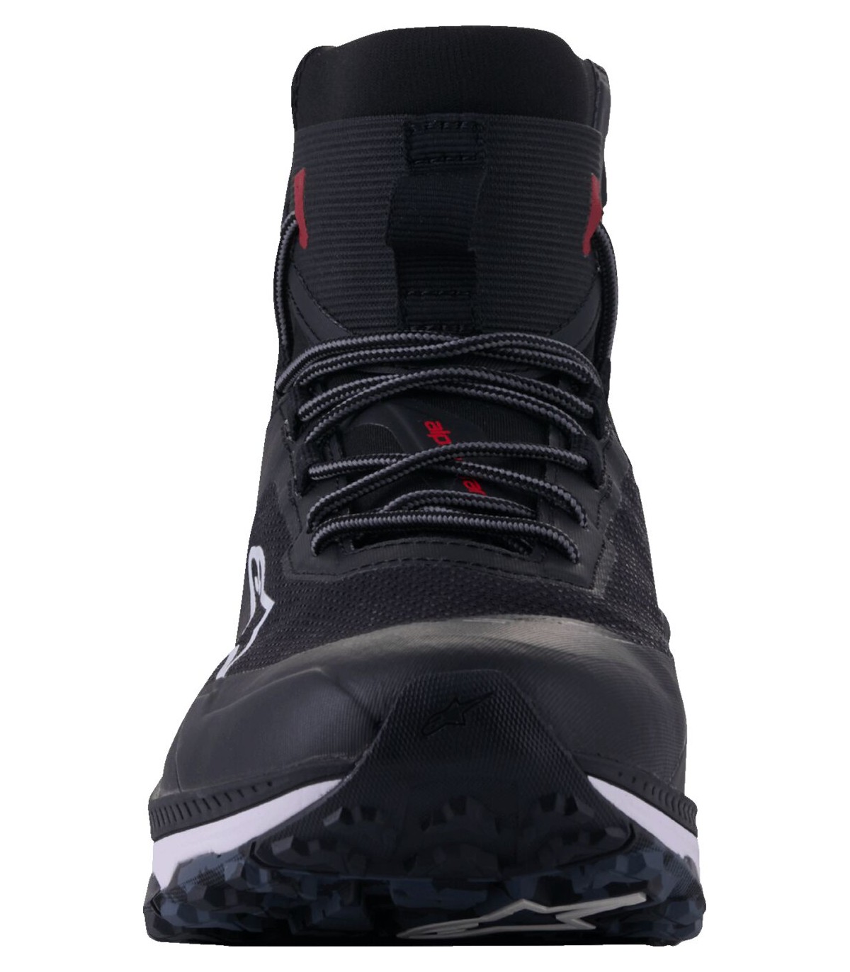 Speedforce XR ShoesRiding shoe with look and feel of a running sneaker that offers versatility and protection. Main upper construction combines textile with seamless PU with reinforced toe and heel counter. Heel counter made in microfiber for durability.Removable OrthoLite® insock offers long lasting comfort on the instep and around the ankle while preventing over heating due to the Open Cell PU compound.Tongue cover made of elasticated material featuring integrated pocket to protect the lace closure. Collar area is elastic for comfort and better fit for different ankle sizes while rear back collar is made from engineered textile material featuring integrated rear puller for easy entry. 3D mesh lining offers high breathability and anti-sliding micro suede on heel.Sole construction features heel dampening EVA pad and integrated Alpinestars transversal protection frame (TPF) technology using forefoot front transversal metal bar.TPU shanks and a PU midsole for transversal protection while offering walking comfort and roll, also featuring a protective carbon textile layer. Oil resistant rubber sole and high grip lugs design for improved grip and control.Medial dual density ankle protectors combined with TPR detail on lateral ankle provides strategic protection and flexibility in key areas. Internal toe box and heel counter reinforcement is layered under the upper for ergonomic design and protection.8mm drop for optimum walking comfort.