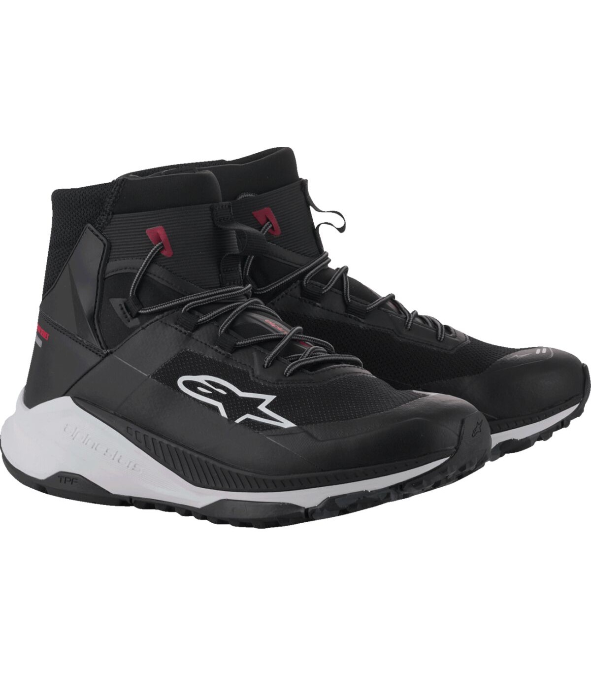 Speedforce XR ShoesRiding shoe with look and feel of a running sneaker that offers versatility and protection. Main upper construction combines textile with seamless PU with reinforced toe and heel counter. Heel counter made in microfiber for durability.Removable OrthoLite® insock offers long lasting comfort on the instep and around the ankle while preventing over heating due to the Open Cell PU compound.Tongue cover made of elasticated material featuring integrated pocket to protect the lace closure. Collar area is elastic for comfort and better fit for different ankle sizes while rear back collar is made from engineered textile material featuring integrated rear puller for easy entry. 3D mesh lining offers high breathability and anti-sliding micro suede on heel.Sole construction features heel dampening EVA pad and integrated Alpinestars transversal protection frame (TPF) technology using forefoot front transversal metal bar.TPU shanks and a PU midsole for transversal protection while offering walking comfort and roll, also featuring a protective carbon textile layer. Oil resistant rubber sole and high grip lugs design for improved grip and control.Medial dual density ankle protectors combined with TPR detail on lateral ankle provides strategic protection and flexibility in key areas. Internal toe box and heel counter reinforcement is layered under the upper for ergonomic design and protection.8mm drop for optimum walking comfort.
