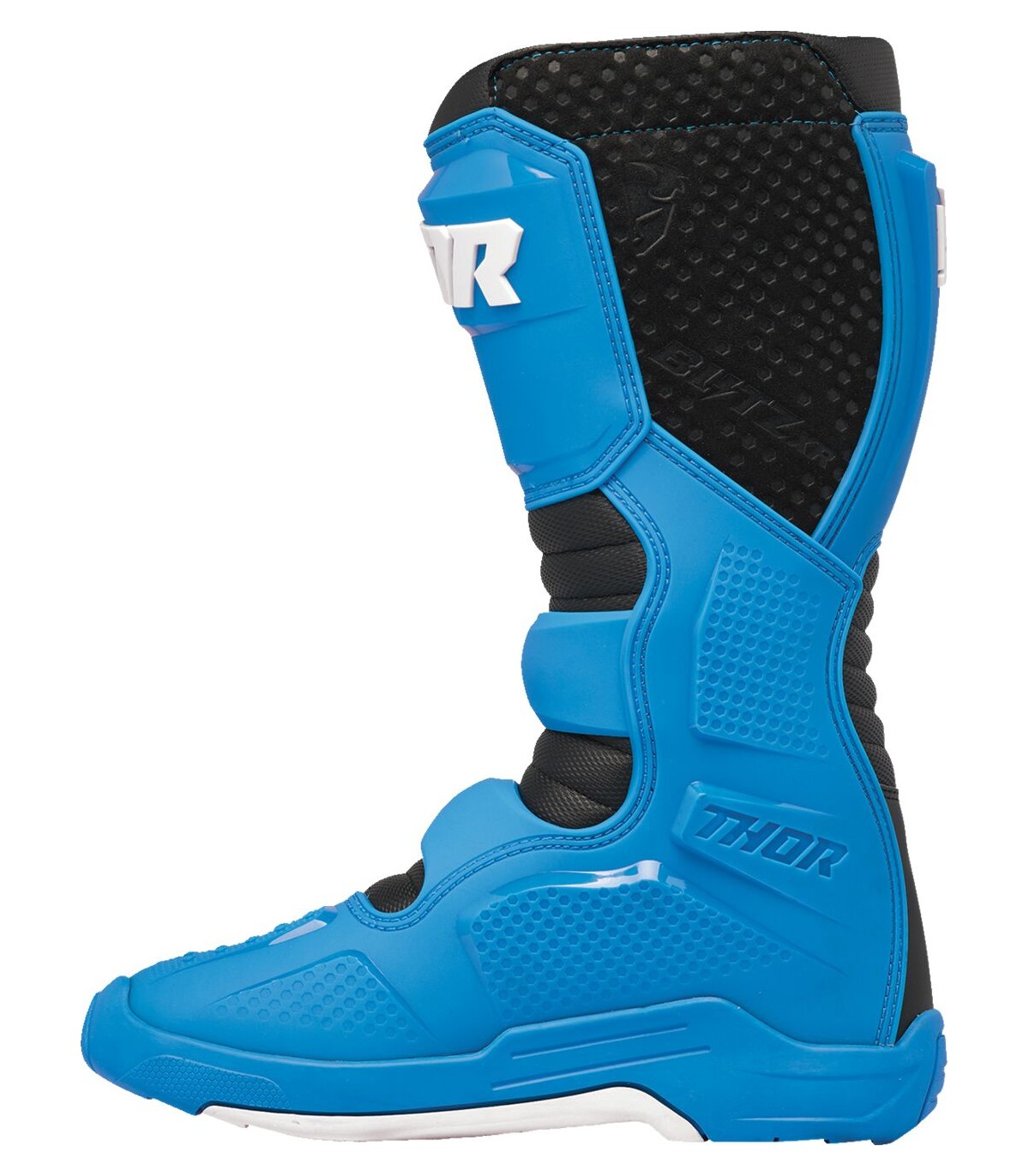 Blitz XR BootsPadded mesh interior improves breathabilityInjection molded medial abrasion plate with integrated shift protectionFully synthetic calf overlays deliver durability and optimal gripInjection molded outsole with a steel shank insert3 fully adjustable straps allow for a custom rider specific fitPre-curved injection molded shin plateTested and certified according to standard EN 13634:2017Injection molded positive lock buckles