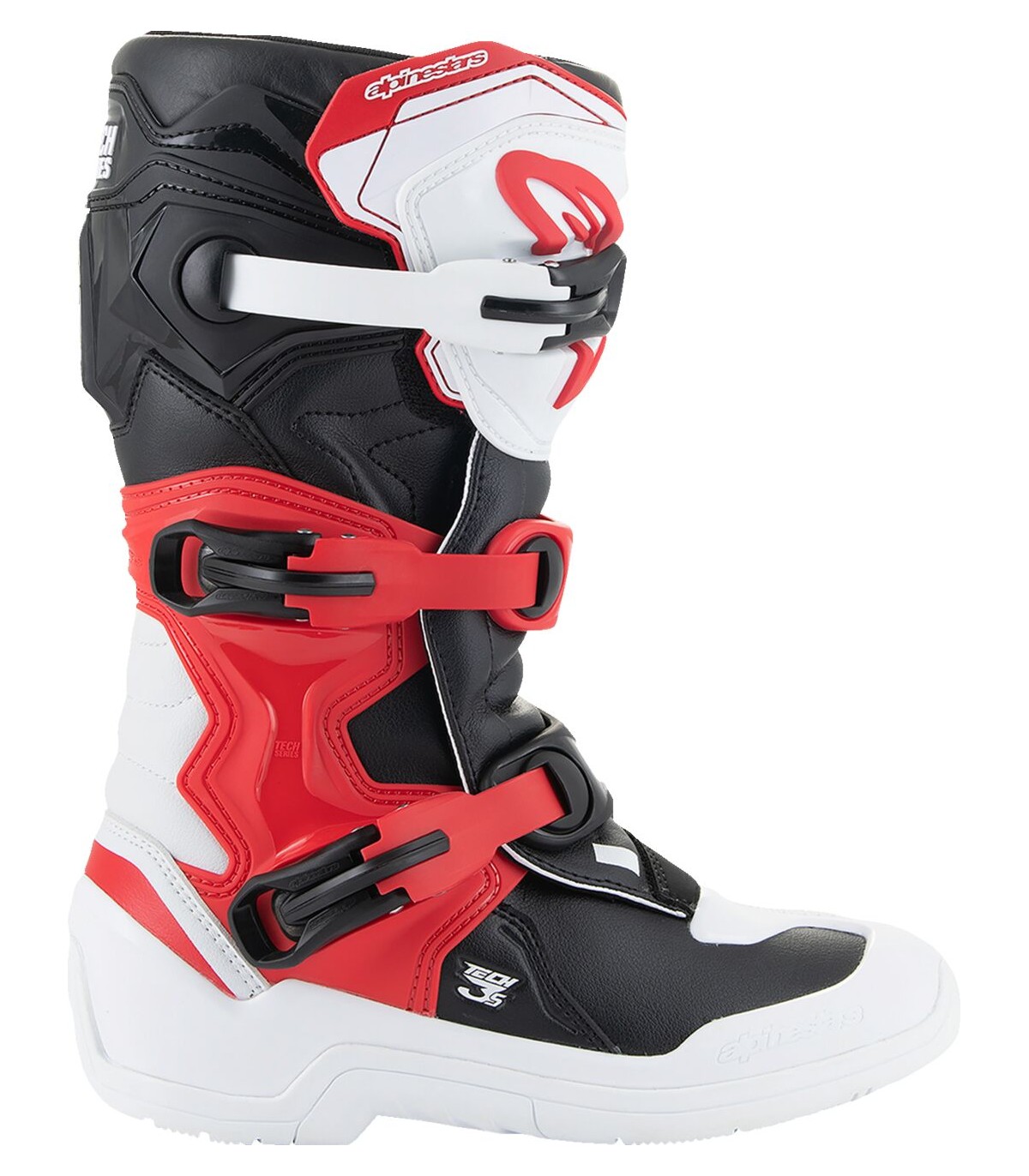 Youth Tech 3S BootsSpecifically designed for up-and-coming youth riders with smaller feetDesigned and developed for optimized comfort and fit for junior riders3-stage instep flex zone for maximum comfort, control, and supportUpper constructed from innovative light in weight microfiber material for flexibility, durability and abrasion resistanceInjected Thermoplastic Polyurethane (TPU) shin plate connected with the TPU medial protector panel; hook and loop grip upper closure, plus Thermoplastic Rubber (TPR) flap for broad ranging calf fit adjustment and supportInternal ankle protection molded into the internal construction of the bootInnovative one-piece TPU injected dual compound foot shell, reinforced by a metal shank inside a co-injected toe reinforcementExternal Polyurethane (PU) molded toe protector providing the ultimate in grip and safety Exclusive rubber outsole design with unique side-wrapping designExternal suede panel located on calf area of boot to provide grip against bikeReplaceable anatomical EVA footbedSpecially adapted removable footbed to accommodate growth and extended longevity of product (only available in boots size: 10-11-12-13-1-2-3-4)External PU shin guard for a high level of impact and abrasion resistance