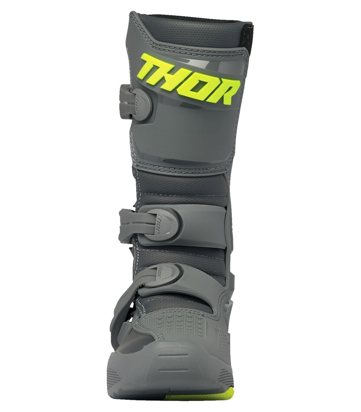 Youth Blitz XR BootsPre-curved injection molded shin plateInjection molded medial abrasion plate with integrated shift protectionFully synthetic calf overlays deliver premium durability and optimal gripMetal toe cap reinforces the outsole strength4 fully adjustable straps allow for a custom, rider specific fitUni-directional outsole with a steel shank insertInjection molded positive lock bucklesTested and certified according to standard EN 13634:2017Mesh liner promotes airflow