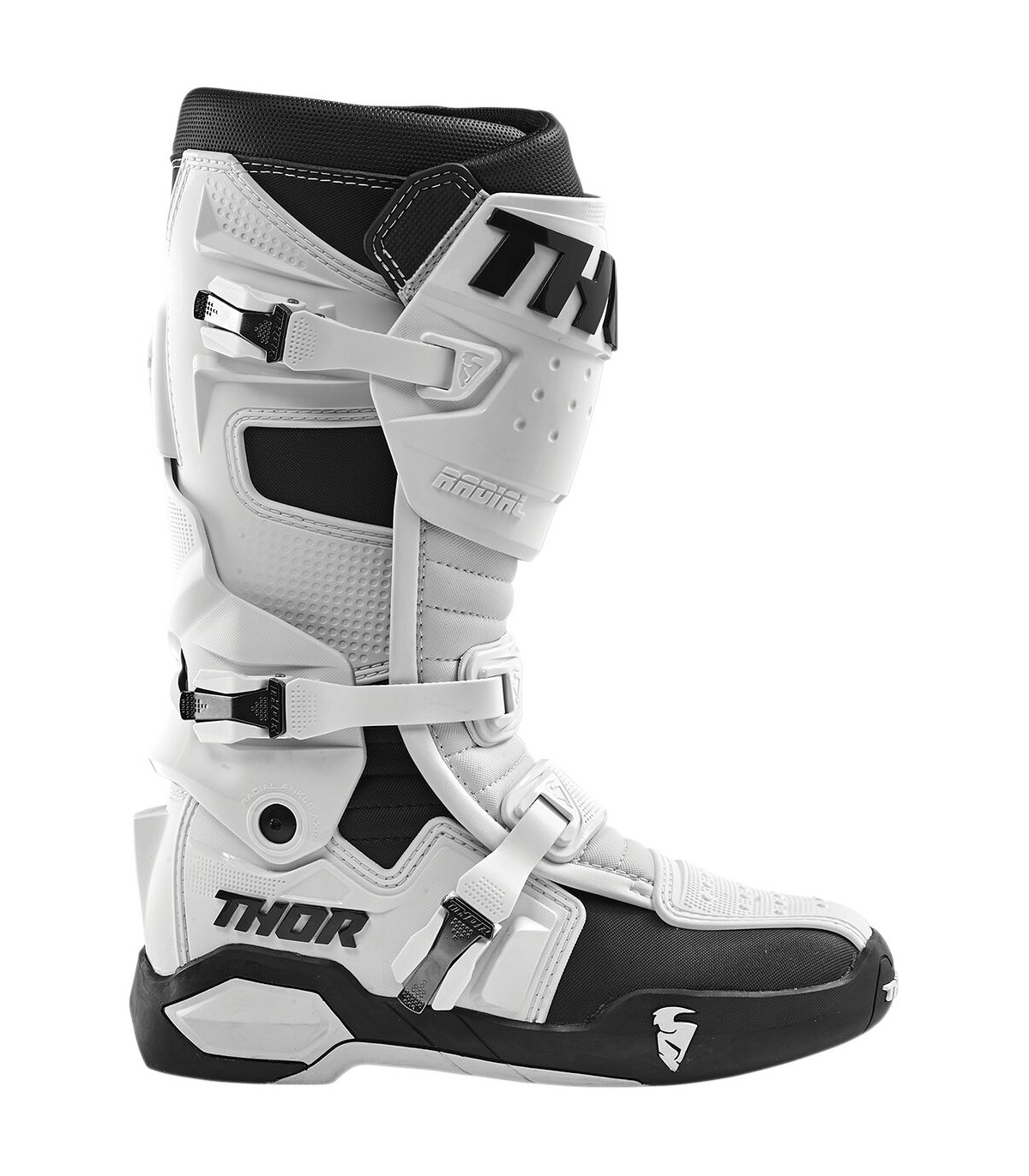 Radial Boots Replacement OutsolesMesh liner promotes airflow while interior EVA panels enhance comfortReplaceable outsole inserts for extended wearUni-directional outsole with steel shank for rigidityLow profile toe box for unhindered shiftingFully synthetic calf overlays deliver premium durability and optimal gripInjection molded medial abrasion plate with integrated shift protectionAdjustable straps allow for a custom and secure fitInjection molded positive-lock buckle systemRadial hinge component adds structure and reduces overextensionPre-curved injection molded components throughout