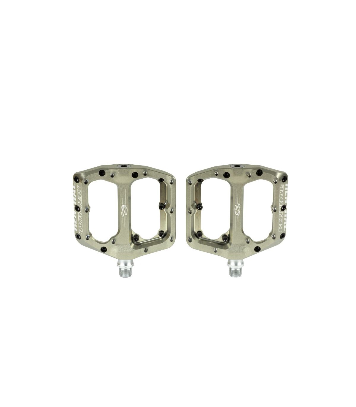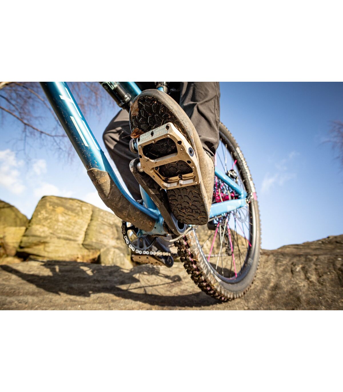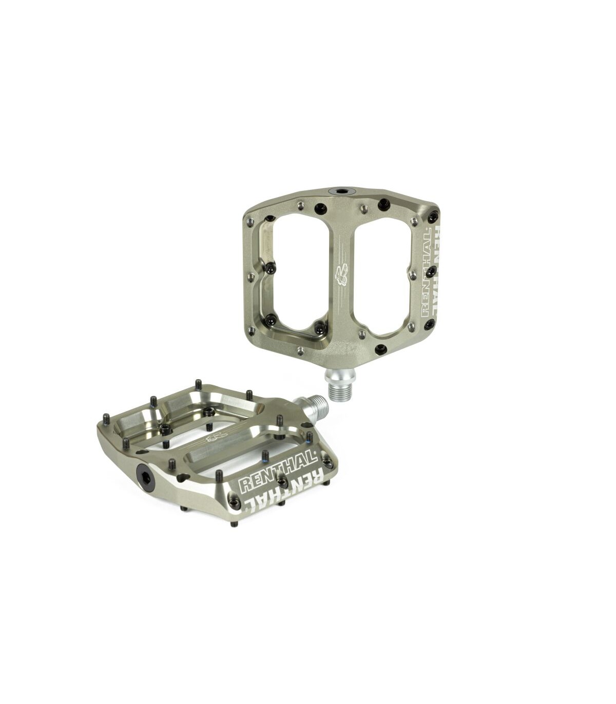 Revo-F Flat PedalIntroducing the Revo-F flat pedals from Renthal. Featuring a deep concave platform, the Revo-F offers unrivalled support and traction.Large parallelogram body profile.Tuneable pin height in 1 mm increments from 2.5 mm to 5.5 mm.High grade chromoly axle.O-Ring sealed end cap, three outboard cartridge bearings, extra wide inboard Igus bushing  and full contact and low friction inboard main seal. Plus, fully serviceable in under 3 mins using standard tools.