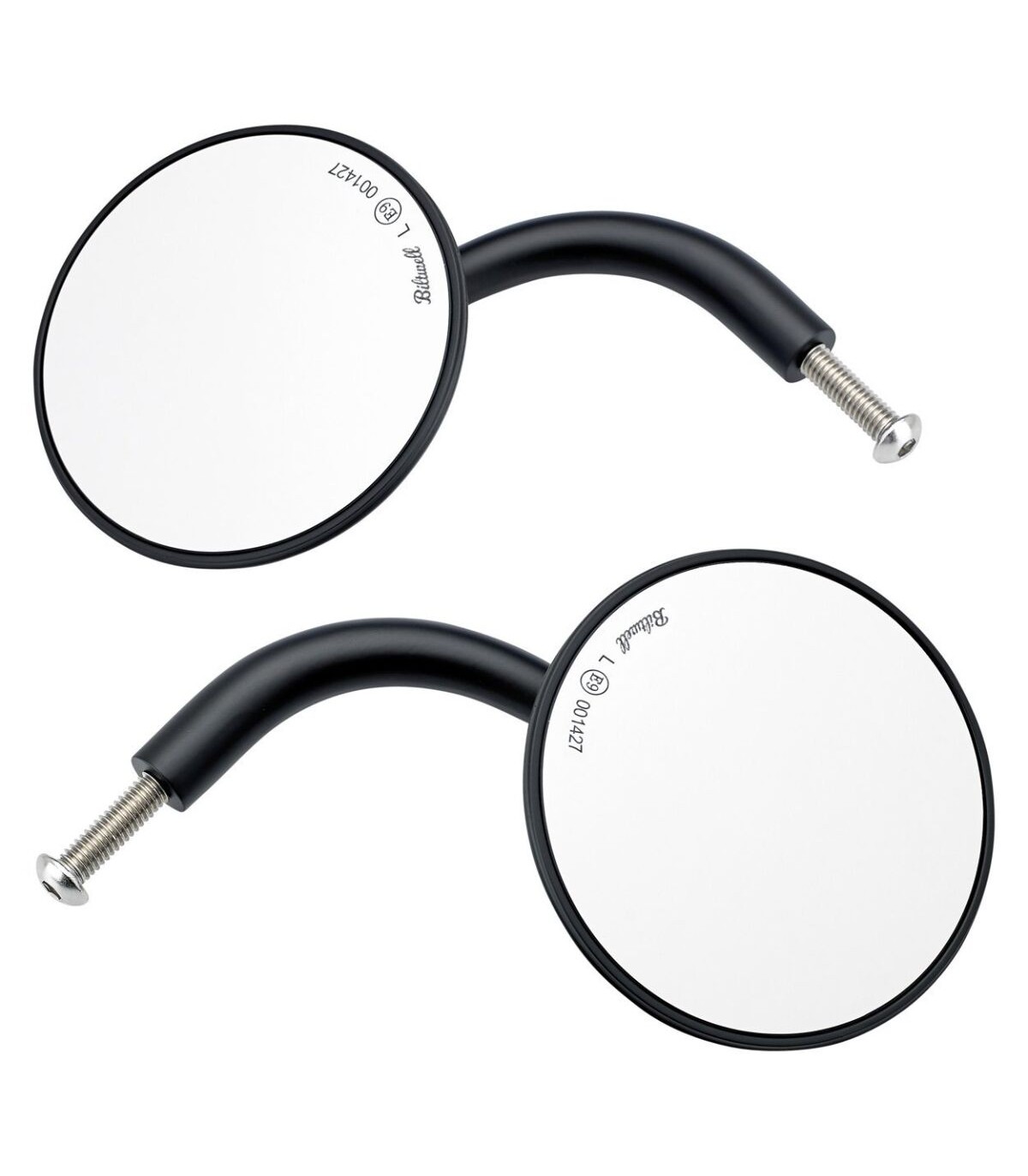 Utility Mirror Round Short ArmInjection die-cast aluminum bezel and perch construction for lightness and durabilityLong mirror perch places the glass high enough to provide an unobstructed view over the rider's shoulderStainless-steel ball pivot and mounting hardware for weather resistance and strengthLarge wide-angle tempered glass mirror provides a broad rear view for safer riding, fit for road and highway ridingMirror bezel mounting hardware can be switched for left- or right-hand installation on select bar end stylesSatin black powdercoat or mirror chrome-plated finishRound and Teardrop shapes available