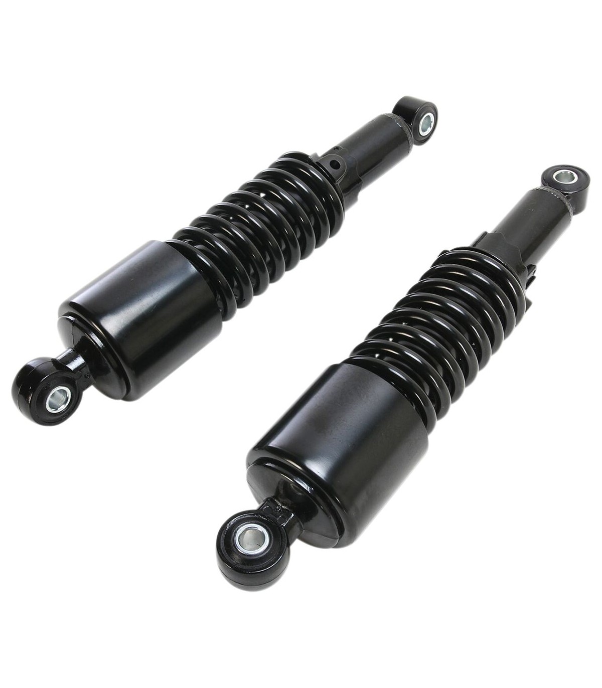 Amortisseurs courts personalisésRabaissez facilement votre moto en installant ces amortisseurs298 mm (11,4 pouces) de long d’œillet à œillet et d’œillet à chapeLes amortisseurs sont munis d’un ajustement de précontrainte à 5 positionsLa fixation de la chape est un filetage de 10 mm x 1,25 et mesure 22 mm de diamètre intérieur.