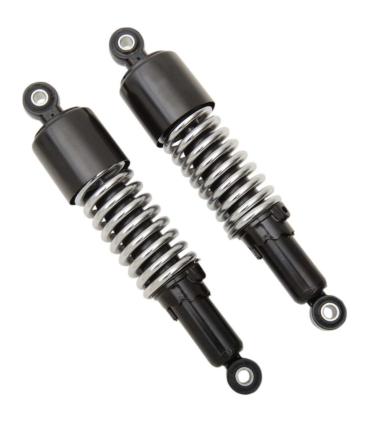 Amortisseurs courts personalisésRabaissez facilement votre moto en installant ces amortisseurs298 mm (11,4 pouces) de long d’œillet à œillet et d’œillet à chapeLes amortisseurs sont munis d’un ajustement de précontrainte à 5 positionsLa fixation de la chape est un filetage de 10 mm x 1,25 et mesure 22 mm de diamètre intérieur.