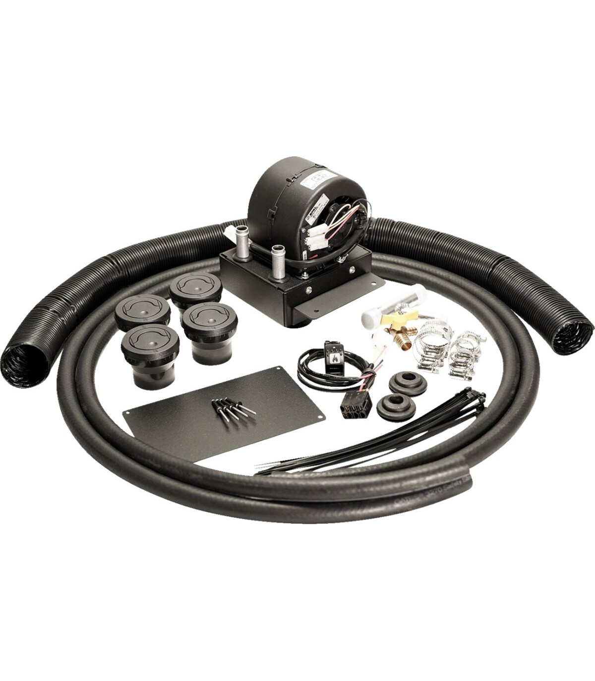 Kit de chauffage de cabine pour SSVKit de chauffage de cabine universel 12 volts pour SSV avec durites de radiateur de 1" et 3/4"Installation rapide et facileUne heure environ suffit.Fonctionne à l’eauFabrication aux États-UnisFor models with glovebox subwoofer.