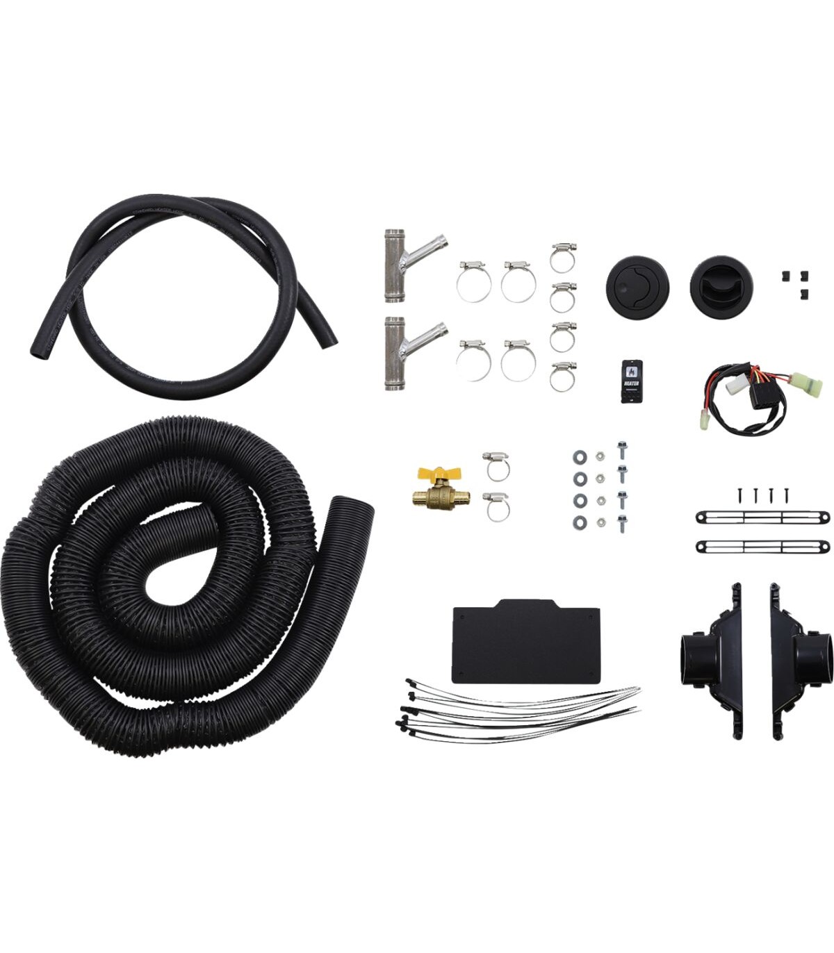 Kit de chauffage de cabine pour SSVKit de chauffage de cabine universel 12 volts pour SSV avec durites de radiateur de 1" et 3/4"Installation rapide et facileUne heure environ suffit.Fonctionne à l’eauFabrication aux États-Unis
