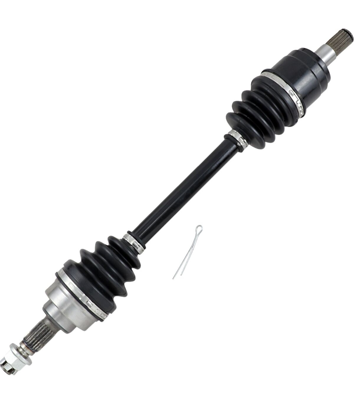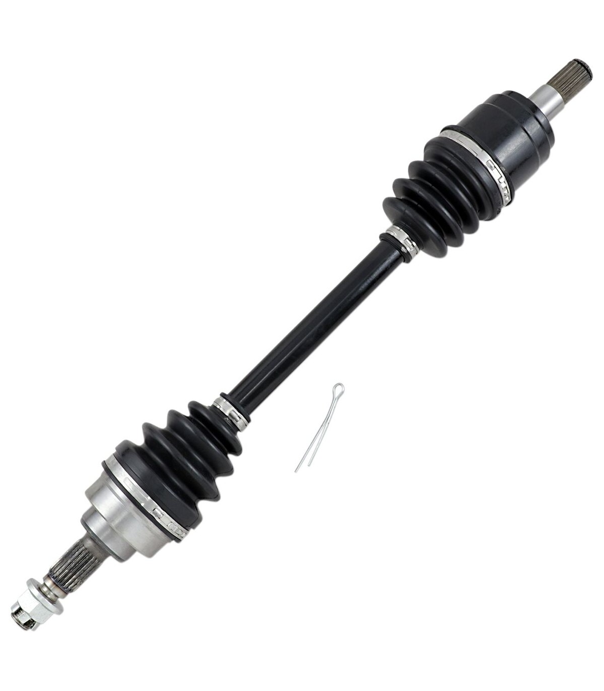 Kit d’axe completTous les composants internes réalisés avec précision sont assemblés grâce à de la graisse moly pour roulement résistant aux températures et charges élevéesTêtes de cardan côté pont et côté roue entièrement assemblées installées sur un arbre du cardan en acier chromoly 43-40Inclut un écrou d’axe et une rondelle (le cas échéant)Assemblage à l’aide de clamps low-profile en acier inoxydable