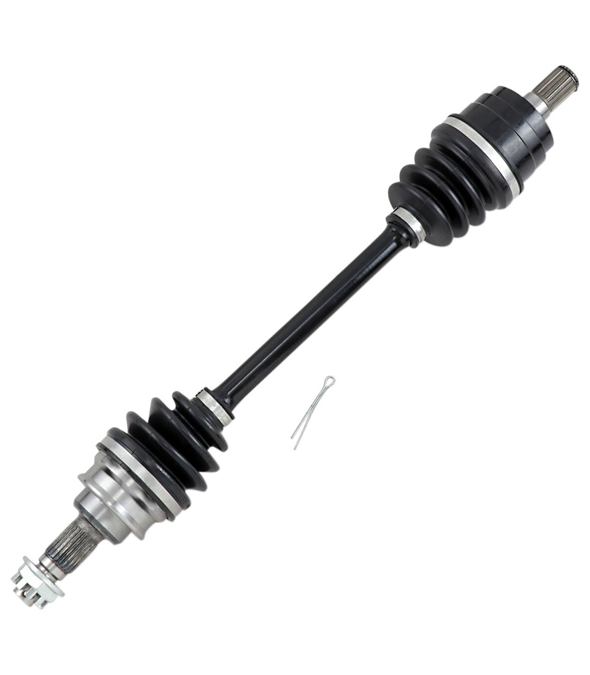 Kit d’axe completTous les composants internes réalisés avec précision sont assemblés grâce à de la graisse moly pour roulement résistant aux températures et charges élevéesTêtes de cardan côté pont et côté roue entièrement assemblées installées sur un arbre du cardan en acier chromoly 43-40Inclut un écrou d’axe et une rondelle (le cas échéant)Assemblage à l’aide de clamps low-profile en acier inoxydable