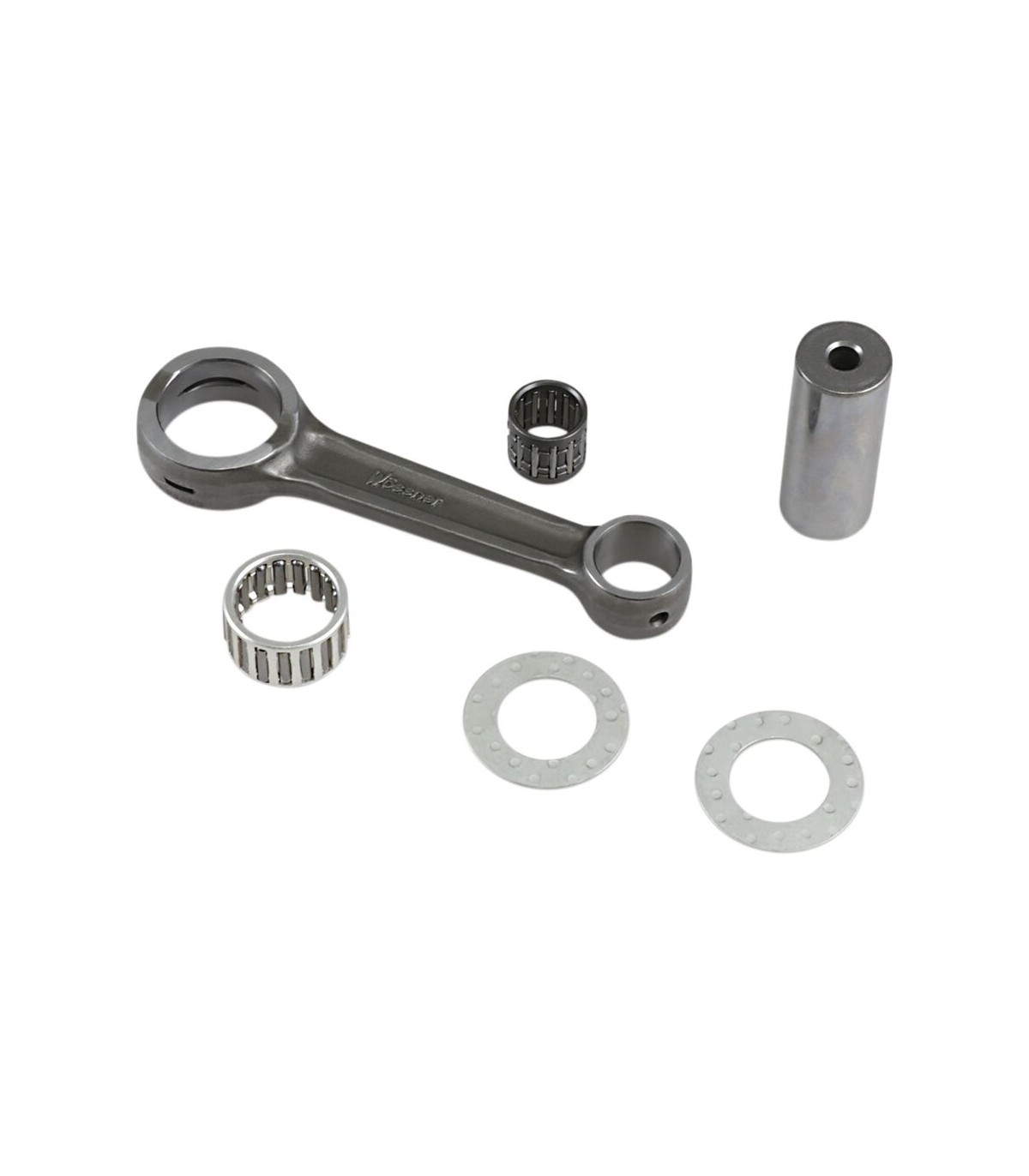 Connecting Rod Kit for 2-StrokeDesigned to fit OEM bearing and crank pinShot peened for ultimate strength and long life8620 forged alloyFEA (computer simulation) used to fine tune every designGerman engineeredFor best results use corresponding Wössner piston kit.Kit includes connecting rod, bearing, big end pin, top end bearing, and washers
