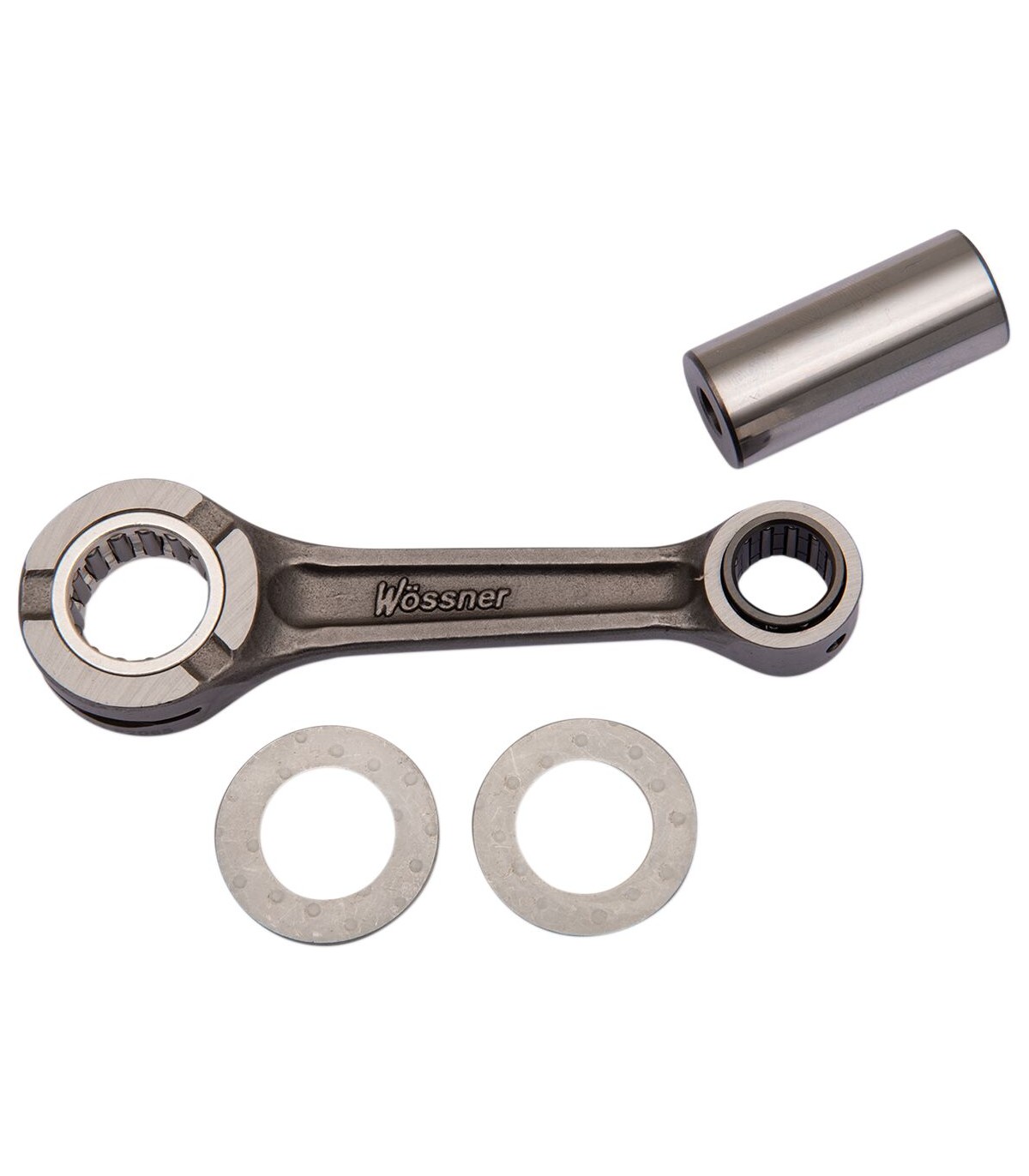 Connecting Rod Kit for 2-StrokeDesigned to fit OEM bearing and crank pinShot peened for ultimate strength and long life8620 forged alloyFEA (computer simulation) used to fine tune every designGerman engineeredFor best results use corresponding Wössner piston kit.Kit includes connecting rod, bearing, big end pin, top end bearing, and washers