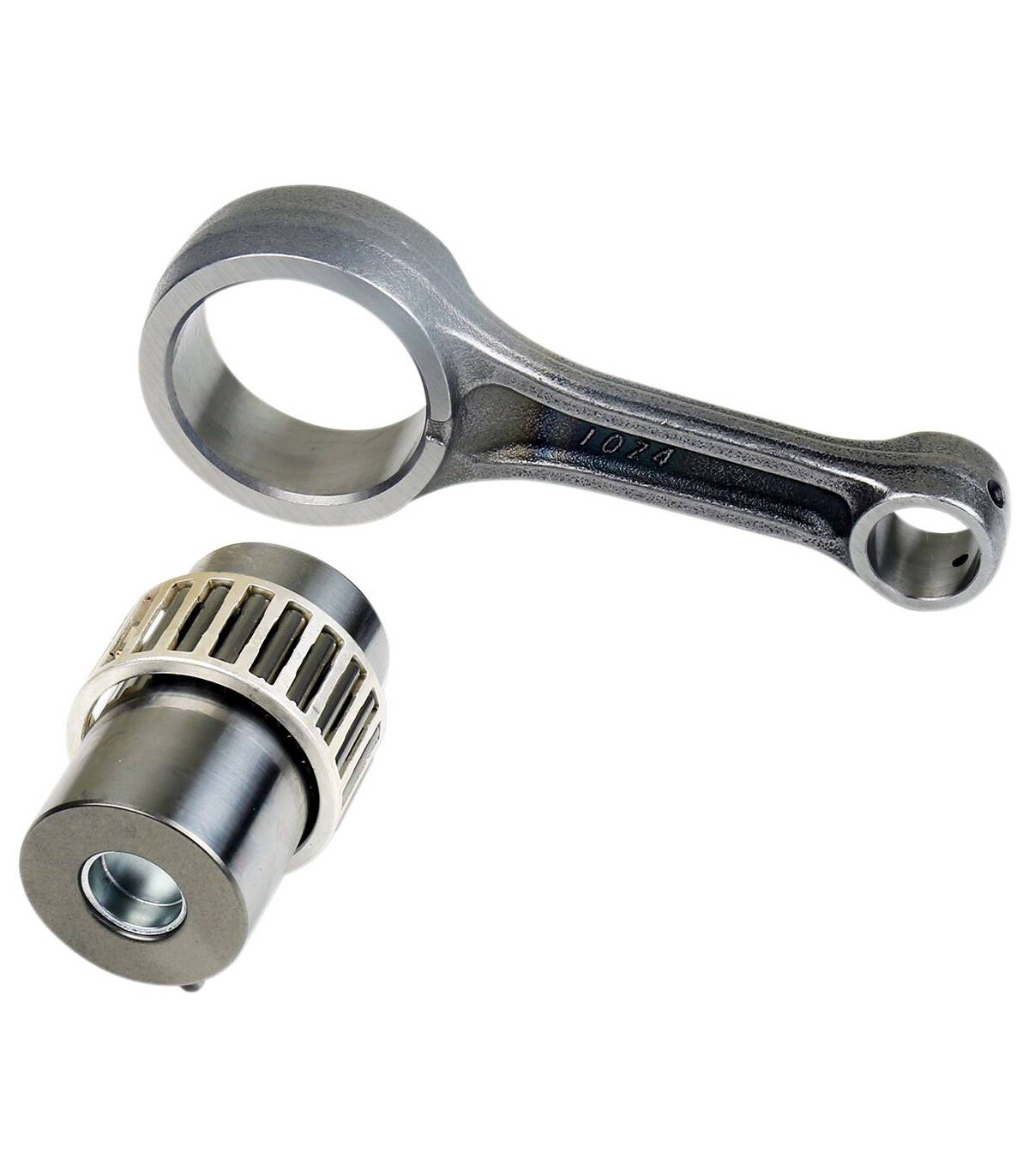 Kit biellesBielles légères haute qualitéFabrication dans des matériaux similaires aux composants d’origine pour garantir les mêmes performancesTraitement superficiel à haute fréquence pour une résistance améliorée, réduisant les tensions dues aux rotations et à l’alternanceLes kits incluent une bielle, des roulements à aiguilles et un maneton (inclut également des axes et des pastilles d’extrémité si nécessaire)Fabrication au Japon