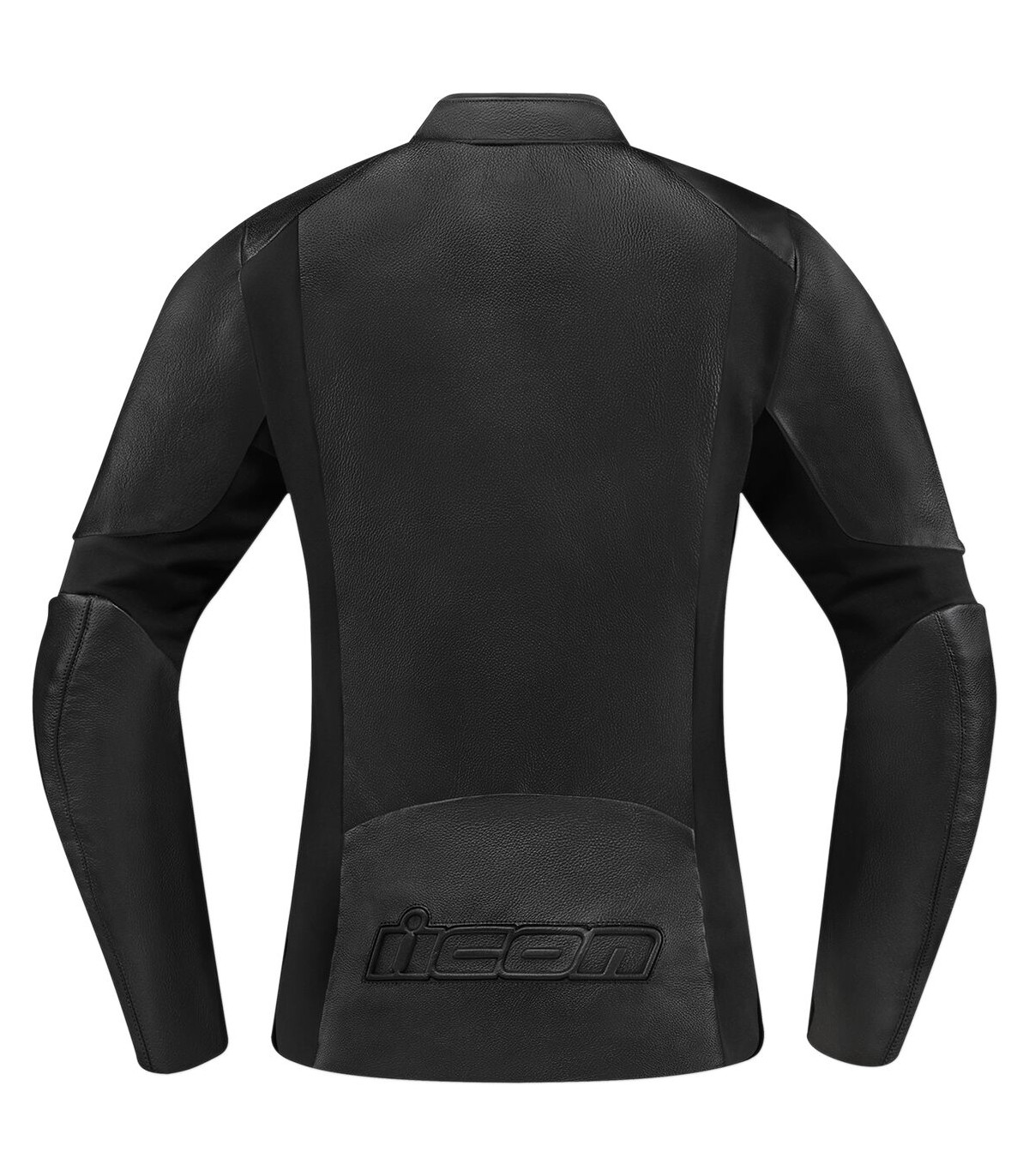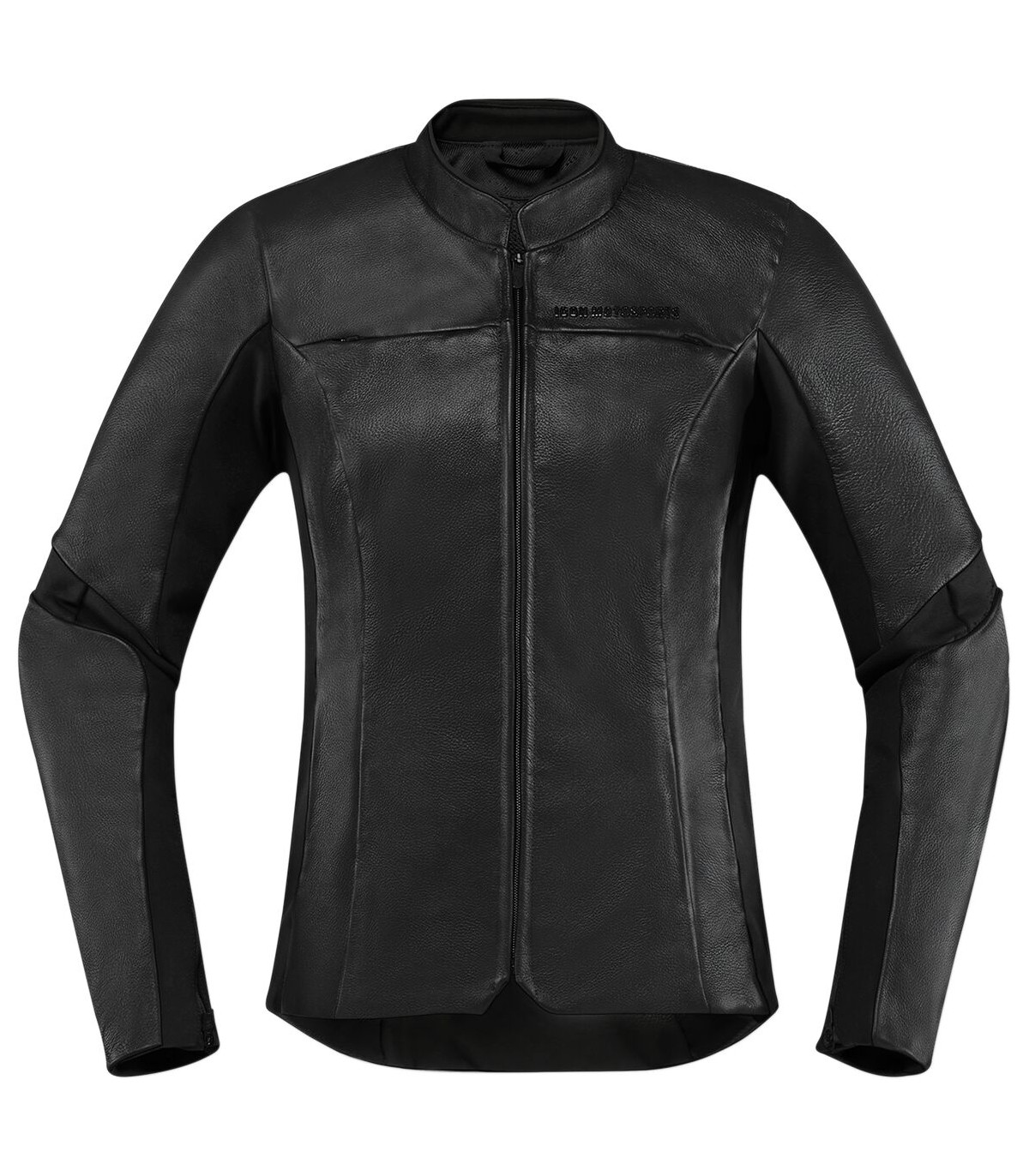 Women's Overlord™ JacketICON® women's sport fit1.2-1.4mm premium cowhideD30® removable back, elbow, and shoulder impact protectors, vented cuff, custom zipper pulls, pre-curved arms