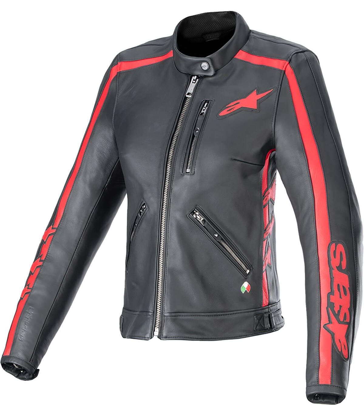 Stella Dyno Leather JacketTech-Air® 3 readyStella Dyno Leather Jacket is Alpinestars modern interpretation of a heritage jacket, and combines premium leather and a regular fit to create a jacket that looks great, on and off the bike, in any settingConstructed from 1.0-1.2mm bovine leather for the optimum blend of light weight, supple and abrasion resistantLeather is dip dyed, and the oils used during this process results in a more natural finish with an overall softer feeling against the skinDetachable thermal vest with 80g insulation at the front for effective cold weather performanceShoulder and elbow armor protectors are engineered with a low profile for a more tailored fitLow profile elbow protectors for a more stripped back and elegant aestheticEN17092-4:2020 – A Class