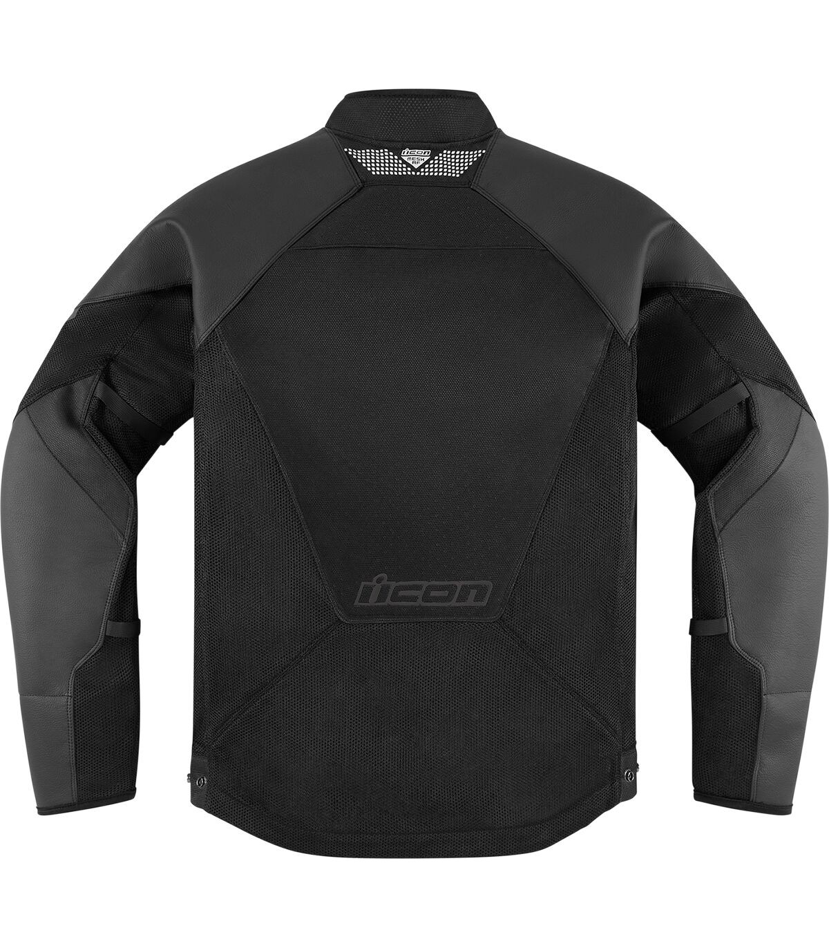 Mesh AF™ Leather JacketDurable 300D polyester and Iron Weave™ mesh chassis1.2 mm - 1.4 mm Tracspec™ leather in primary crash zoneAdjustable waist and arm strapICON® sport fitYKK® zippersBack protector EN 1621-2 Level 1EN17092-4:2020 – A Class