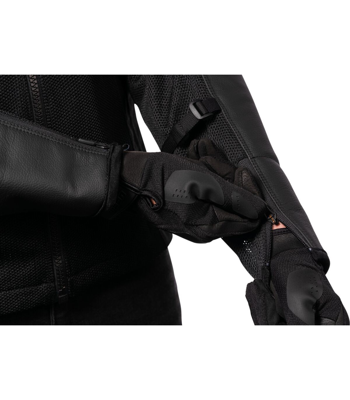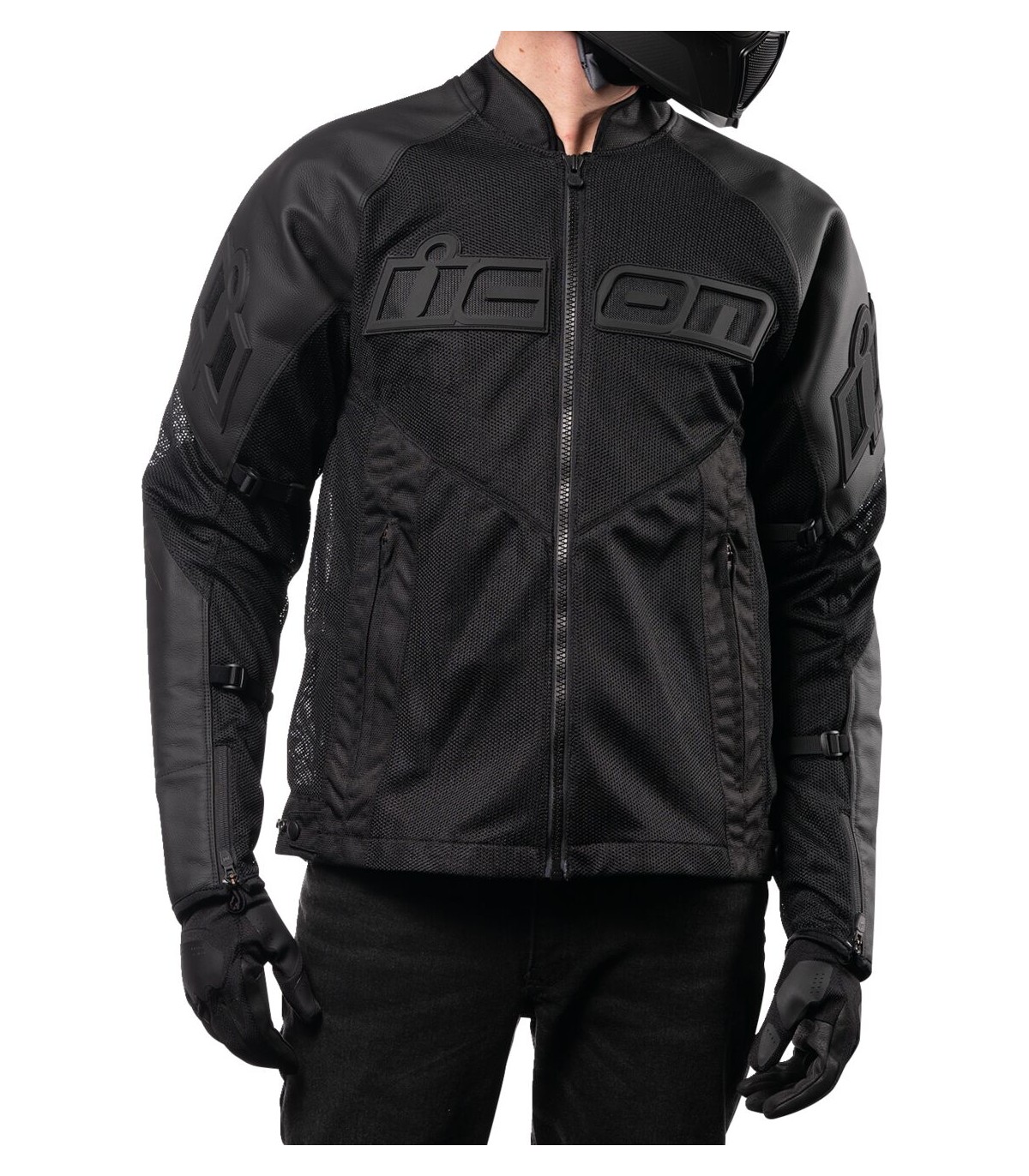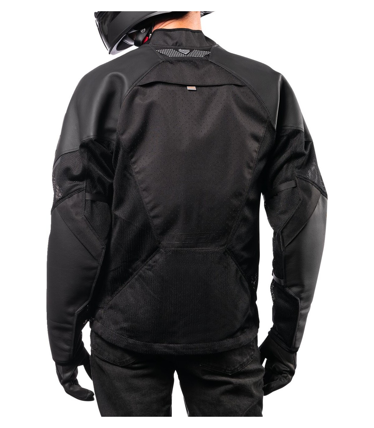 Mesh AF™ Leather JacketDurable 300D polyester and Iron Weave™ mesh chassis1.2 mm - 1.4 mm Tracspec™ leather in primary crash zoneAdjustable waist and arm strapICON® sport fitYKK® zippersBack protector EN 1621-2 Level 1EN17092-4:2020 – A Class
