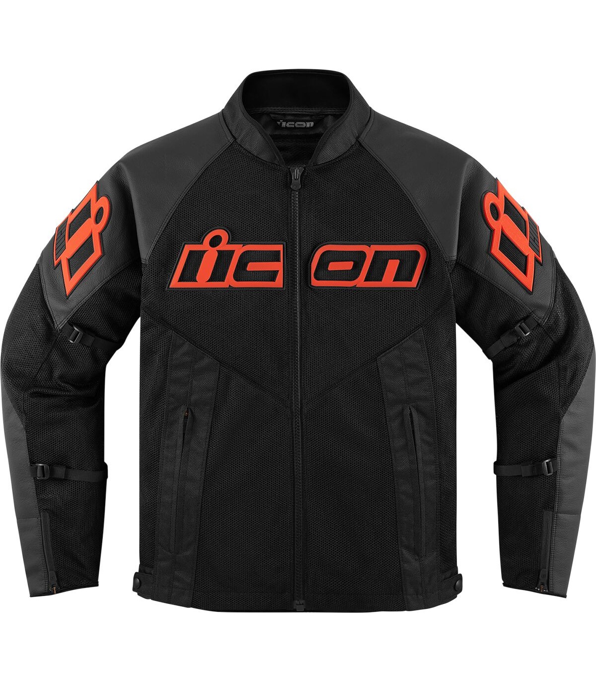 Mesh AF™ Leather JacketDurable 300D polyester and Iron Weave™ mesh chassis1.2 mm - 1.4 mm Tracspec™ leather in primary crash zoneAdjustable waist and arm strapICON® sport fitYKK® zippersBack protector EN 1621-2 Level 1EN17092-4:2020 – A Class