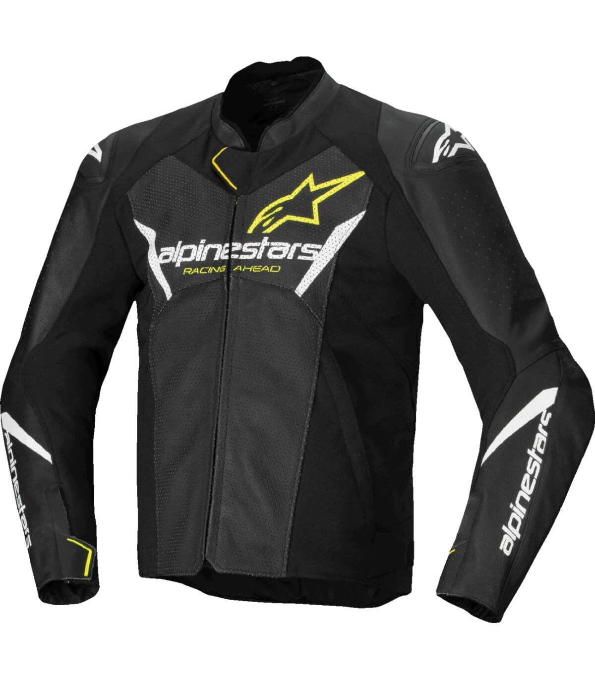 Faster v3 Airflow Leather JacketCombines leading protective performance features and rider comfortKey Features: Highly durable and technical leather, with multi-panel construction for strength, comfort, and abrasion resistanceExtensive advanced Hyper Resistant Stretch Fiber (HRSF) stretch inserts on chest, back, abdomen, underarms, shoulder blades, and inner arms for optimal performance and freedom of movementPre-curved arms and ergonomic elbows for premium rider comfort and fitZippered opening vents on side torso for added ventilationHook waist volume adjustment for an optimized fitErgonomic die-cut collar construction with synthetic suede inner collar for comfortProtection features: Tech-Air® 5 and Tech-Air® 3 readyIntegrated DFS GP Lite protectors on the shoulders for superior friction controlNucleon Flex Plus shoulder protectors for protection against impactsGP Lite elbow armor for protection in key areaTech Specs: Fixed mesh liner for enhanced rider comfort with internal pockets for a divided chest protector and a back protector pocket, both available as accessory upgradesBuilt-in welded front flap closure at the top of the jacket and on the wrists for a secure, customized fitWaterproof inner compartmentLarge zippered front pockets for secure storageWaist connection zipper allows for secure attachment to Alpinestars riding pantsRear of the jacket is elongated for coverage and comfort while in the riding positionEN 17092-4:2020 - A ClassElbow & shoulder protection EN 1621-1:2012 Level 1