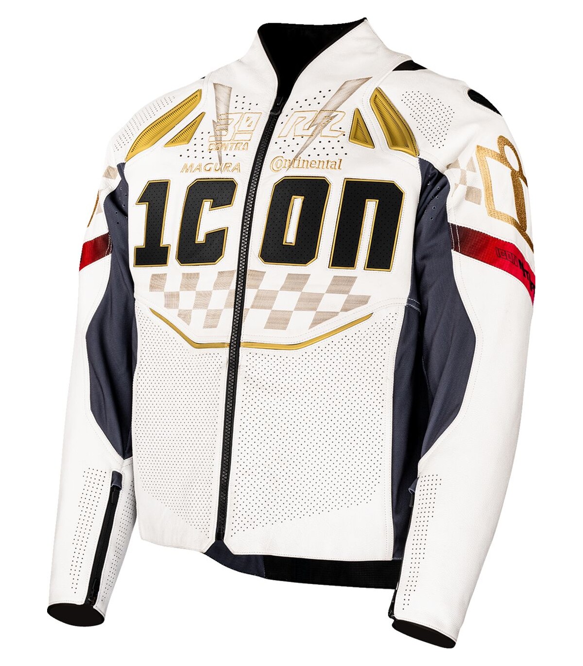 Contra3™ Rizz Rizz JacketPre-curved arms are designed for an aggressive riding stance1.2-1.4 mm Brazillian Cowhide chassis D3O® level 1 impact protectors in the shouldersStrategic laser cut perforations allow adequate airflow in warmer riding conditionsRemovable full-length insulated linerCustom Icon graphicsReflective accents Premium YKK® zippers, zippered cuff closureEN 17092-4:2020