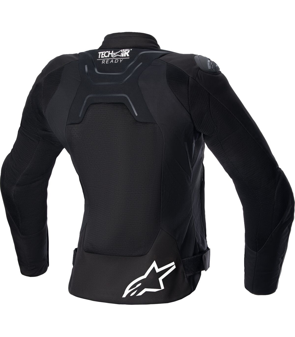 Stella SMX Air JacketTech-Air® ReadyDedicated female fitErgonomic design for optimal sport movement and flexibilityStrategic stretch inserts on side torso and upper back panelWaist adjustersDetachable windproof linerMesh chassis with mechanical stretch combined with polyfabric 450D perforated in key areas including the chest panelWaterproof compartmentNew inner construction for Nucleon protection insert upgrades, ready to accommodate the new Alpinestars’ long back protector insertNucleon Flex Plus armorDFS lite shoulder external protectorsEN 17092-4:2020 – A ClassElbow & shoulder protection EN 1621-1:2012 Level 1