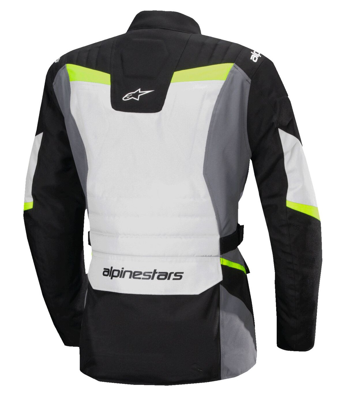 Stella ST-1 Waterproof JacketAll-weather, waterproof construction and crafted for ergonomic mobilityDetachable waterproof, thermal liner to help keep the rider warm and comfortableFront vent panels on the chest provide cooling airflow, improving breathability and comfortRedefined, modern shoulder design with Alpinestars stylish branding gives the jacket an adventure touring-inspired lookPre-curved arms and ergonomic elbows for excellent freedom of movementDetachable liner 80g torso, 80g sleeves with snap button connections to anchor the liner to the jacket, and able to store in the lower back cargo pocket when not in useTech-Air® readyNucleon Flex Plus elbow and shoulder armor for effective impact protectionFixed membrane liner for enhanced rider comfort with internal pockets for a divided chest protector and a back protector pocket, both available as an optional extra accessory2 front cargo pockets, 1 lower back cargo pocket, 1 zippered chest pocket, and 2 inner mesh pockets providing versatility and secure storage of valuablesSleeve volume adjusters with press buttons on the biceps, hook-and-loop collar, cuff and waist adjusters for a tailored fitExtended cut on the back for greater coverage when ridingPant connection zipper for a secure fit and the prevention of wing ingressCategory II EN 17092-4:2020 – A ClassElbow & shoulder protection EN 1621-1:2012 Level 1