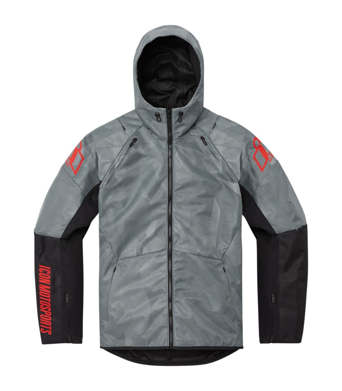 Airform Battlescar™ JacketICON® sport fitDurable 420D polyester chassis with internal reinforcementsAirFly™ center front stowable mesh panelChest and back zippered ventsStowable hoodVented cuff zippersWaist adjuster draw cordWeather-resistant level WP1