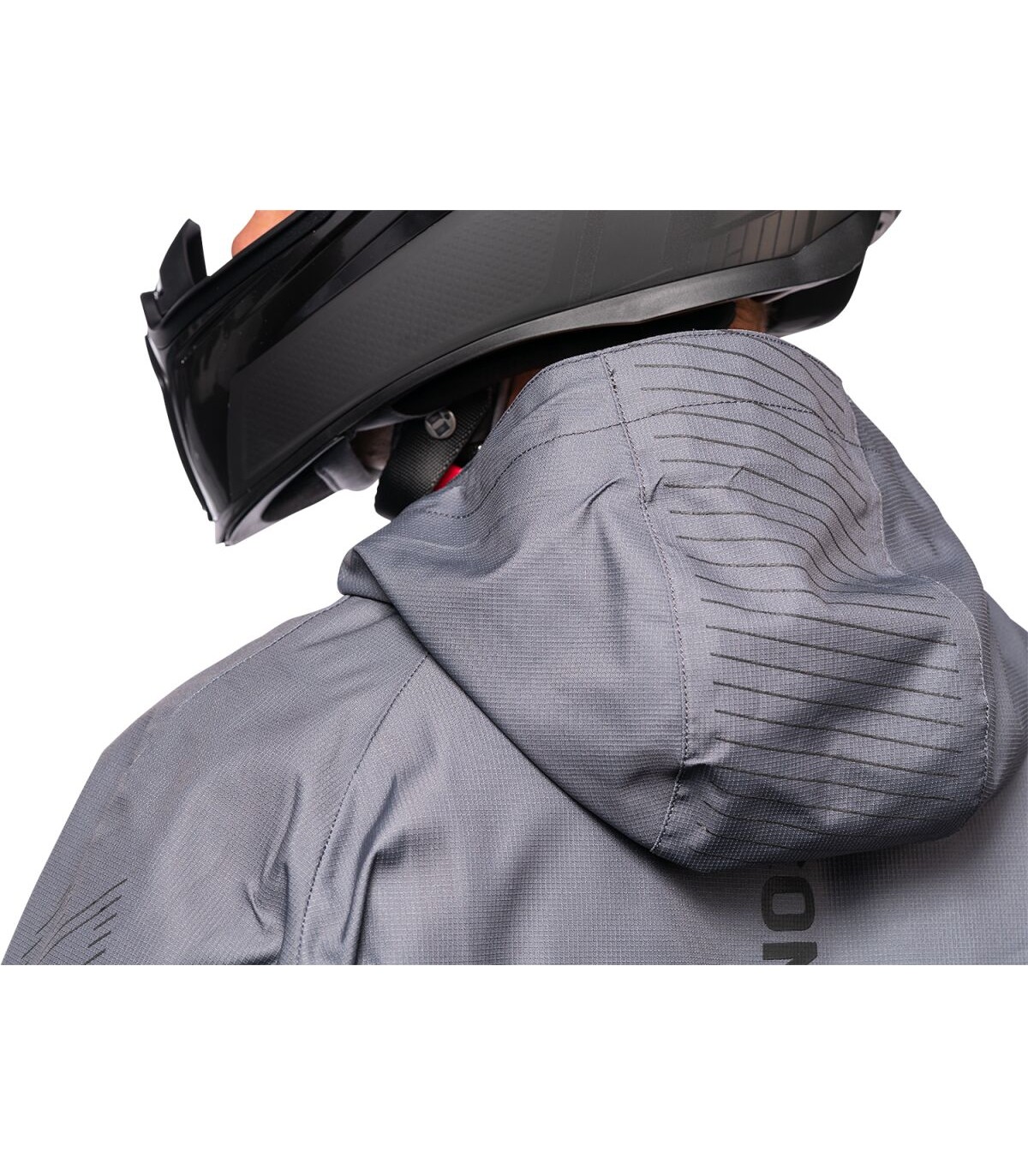 PDX3™ JacketRemovable insulated vest linerInternal 300D polyester reinforcementsHycor™ waterproof/breathable chassisOversized pit ventsICON® relaxed fitRoll and stow hoodBack protector EN 1621-2 Level 1