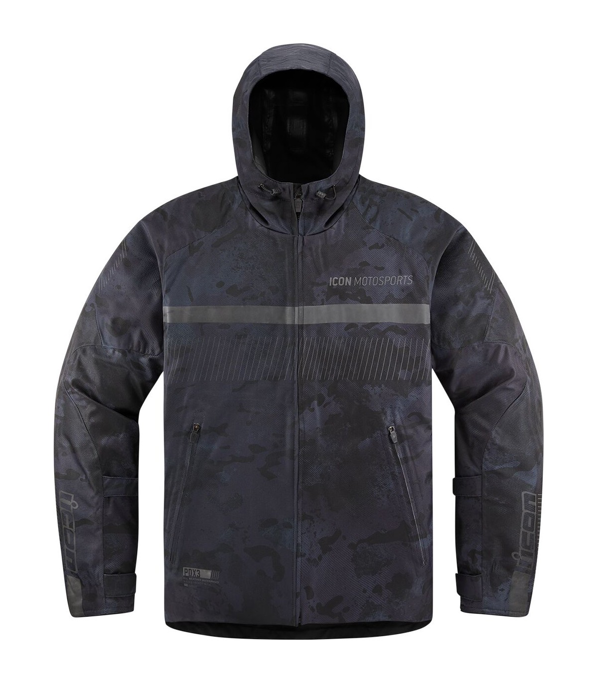 PDX3™ JacketRemovable insulated vest linerInternal 300D polyester reinforcementsHycor™ waterproof/breathable chassisOversized pit ventsICON® relaxed fitRoll and stow hoodBack protector EN 1621-2 Level 1