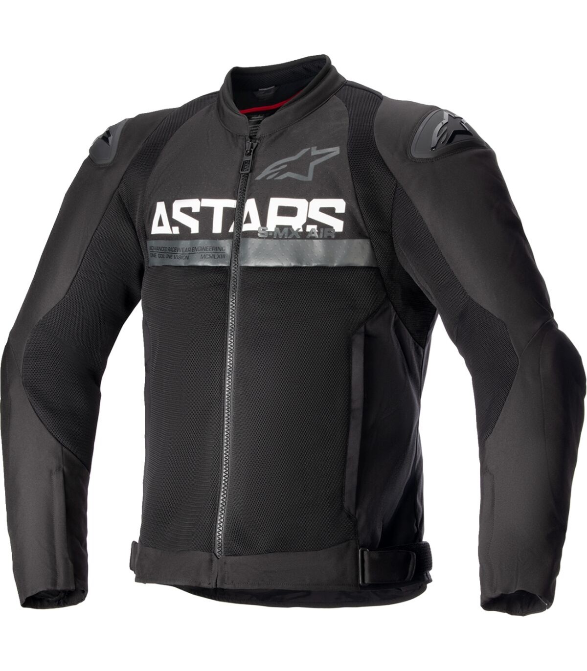 SMX Air JacketTech mesh chassis with mechanical stretch combined with polyfabric 450D perforated in key areas including the chest panelInner construction for Nucleon protection insert upgrades, ready to accommodate the new Alpinestars’ long back protector insertExtended polyamide stretch material has been incorporated on the rider’s back shoulders and sides, with a high density stretch material on the upper backTech-Air® readyStrategic stretch inserts on side torso and upper back panelErgonomic design for optimal sport movement and flexibilityWaist adjustersWaterproof compartmentDFS Lite external shoulder protectorsPerforated 450D poly-fabric on the upper chest for excellent levels of airflow during the warm, summer riding monthsStretch material provides an adaptive fit and freedom of movement, as well as, offers the perfect expansion ability for use with the Tech-Air® 5 Airbag SystemPremium ventilation with a detachable windproof liner to help reduce airflow when it’s not needed, providing optimal climate comfort and versatilityHighly ventilated - the perfect choice for the every-day commuter and weekend rider looking for a versatile and protective street sport jacket for riding in warm climatesEN 17092-4:2020 – A ClassElbow & shoulder protection EN 1621-1:2012 Level 1