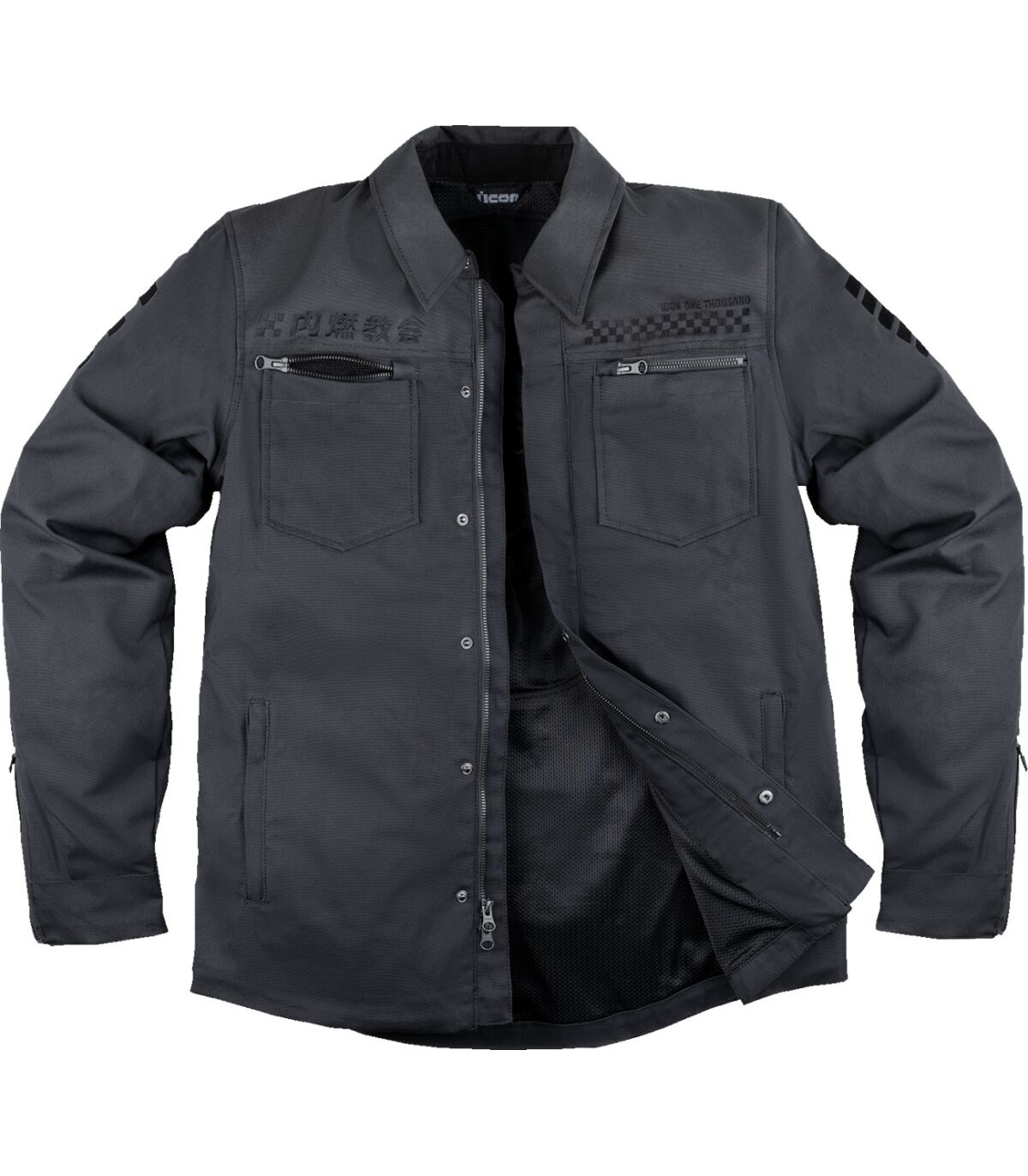 Upstate Canvas National JacketElbow and shoulder LP1 impact protectorsYKK® zippersZipper vents at cuff and chestDurable 400D polyester and cotton stretch canvas chassisICON® relaxed fitRemovable Viper back protector400D polyester reinforcements in elbows & shoulders Back protector EN 1621-2 Level 1
