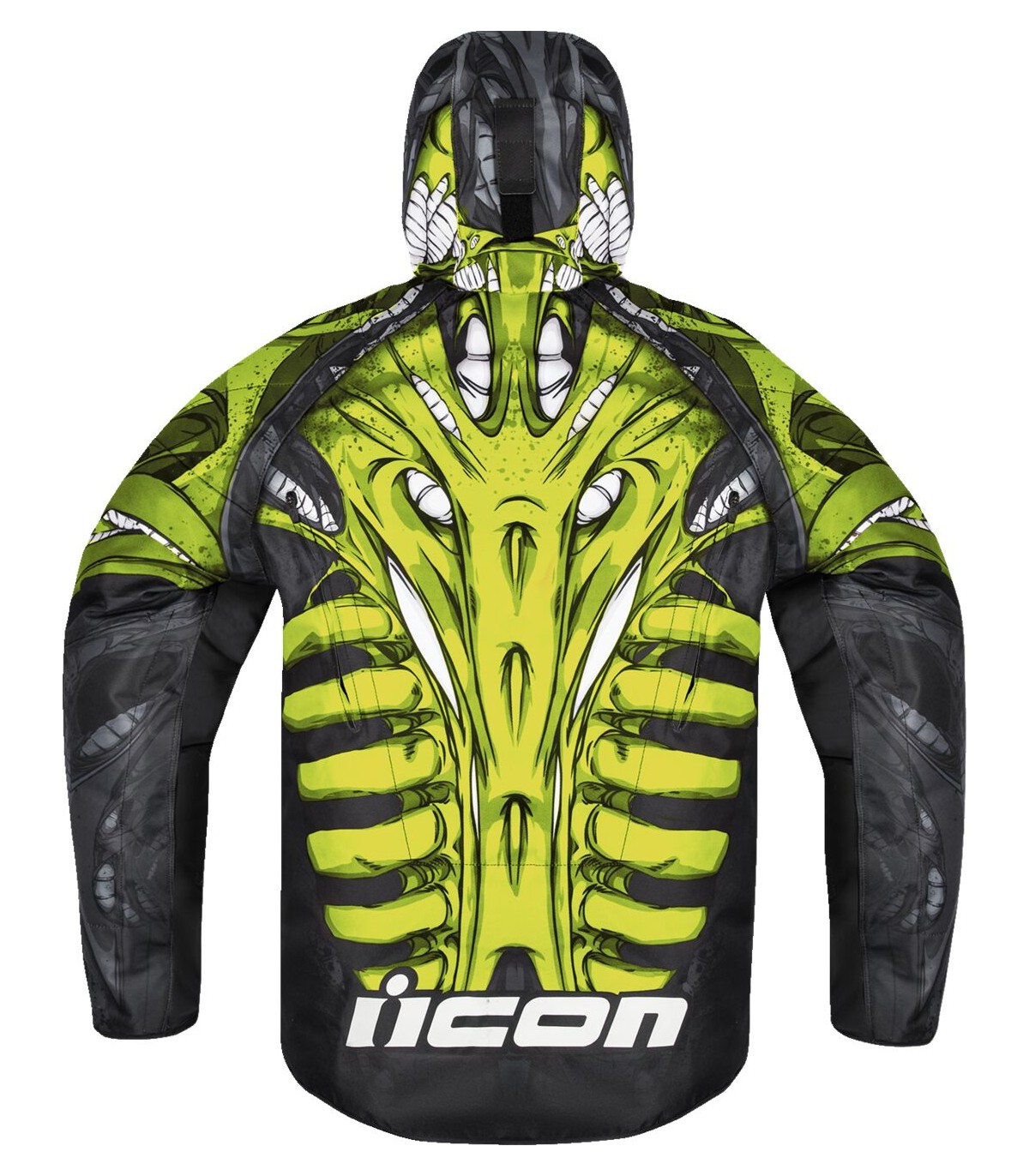 Airform Manik'r™ JacketAirform Manik'r™ graphic on front and back of jacket420D Polyester chassis with 300D Polyester internal reinforcementPU-Coated shell material with DWR finishD30® removable Viper back protector; elbow and shoulder impact protectorsBungee cord style drawstring hoodAirFly™ center front mesh panel with chest and back zippered vents Vented cuff zippersBack protector EN 1621-2 Level 1