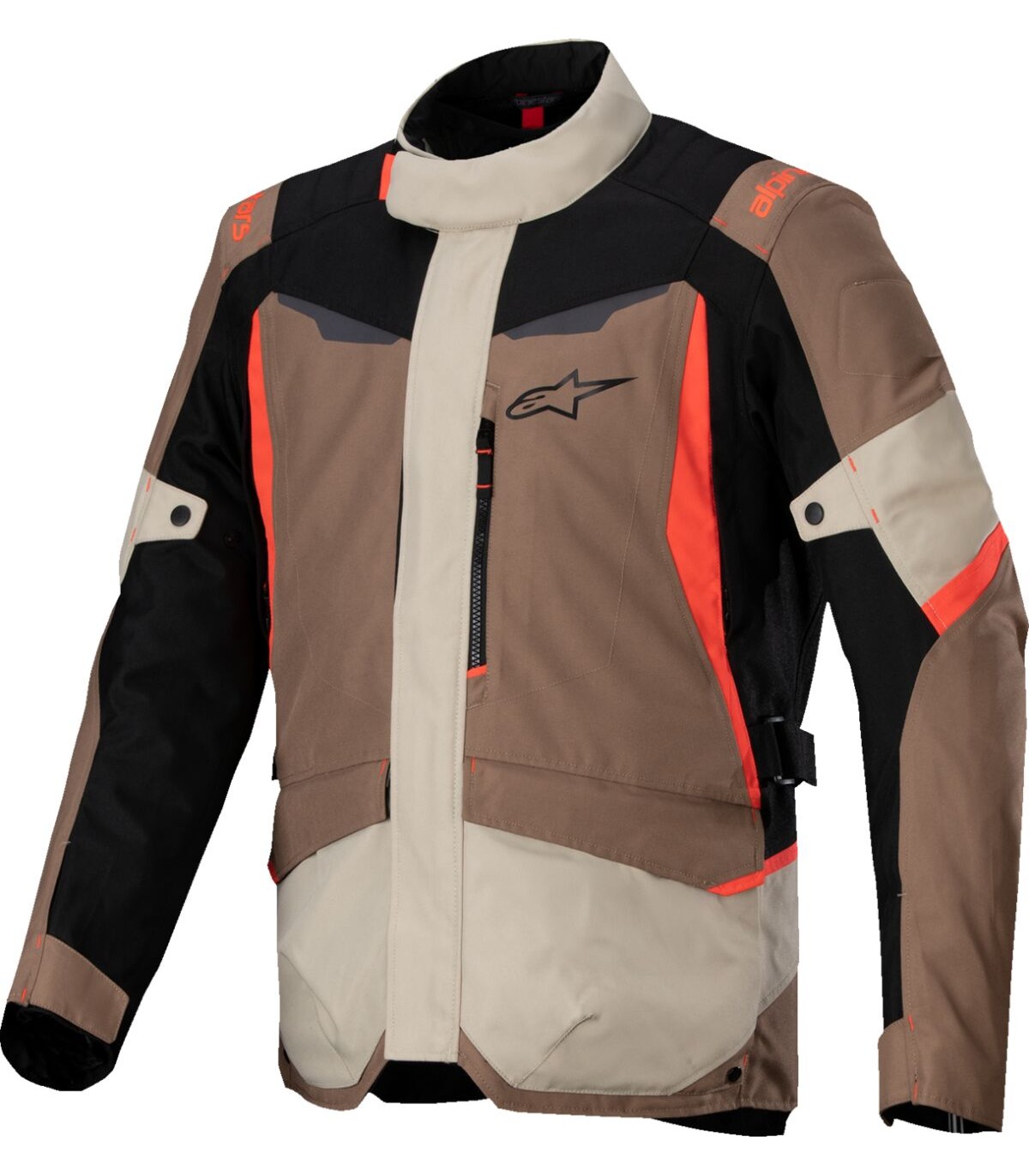 ST-1 Waterproof JacketAll-weather, waterproof construction and crafted for ergonomic mobilityDetachable waterproof, thermal liner to help keep the rider warm and comfortableFront vent panels on the chest provide cooling airflow, improving breathability and comfortRedefined, modern shoulder design with Alpinestars stylish branding gives the jacket an adventure touring-inspired lookPre-curved arms and ergonomic elbows for excellent freedom of movementDetachable liner 80g torso, 80g sleeves with snap button connections to anchor the liner to the jacket, and able to store in the lower back cargo pocket when not in useTech-Air® readyNucleon Flex Plus elbow and shoulder armor for effective impact protectionFixed membrane liner for enhanced rider comfort with internal pockets for a divided chest protector and a back protector pocket, both available as an optional extra accessory2 front cargo pockets, 1 lower back cargo pocket, 1 zippered chest pocket, and 2 inner mesh pockets providing versatility and secure storage of valuablesSleeve volume adjusters with press buttons on the biceps, hook-and-loop collar, cuff and waist adjusters for a tailored fitExtended cut on the back for greater coverage when ridingPant connection zipper for a secure fit and the prevention of wing ingressCategory II EN 17092-4:2020 – A ClassElbow & shoulder protection EN 1621-1:2012 Level 1