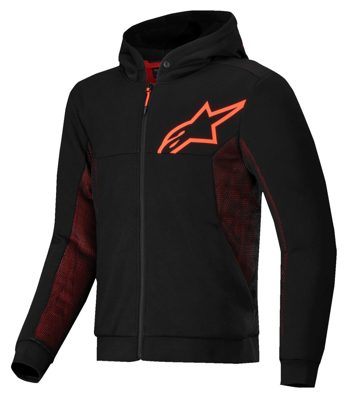 Chrome Air Sport HoodieOptimized for maximum airflow and cooling performanceOffers excellent abrasion resistance thanks to the aramidic reinforcements on the shoulders and elbowsEquipped with Nucleon Flex Plus protectors on the shoulders and elbows for superior impact protectionFeatures an evolved fit designed for a modern athletic silhouette, while still maintaining enhanced levels of comfort and fitOptimized for comfort and freedom of movement without sacrificing style or performanceAirflow mesh is strategically placed on the side panel and under the sleeves, allowing for optimal airflowFeatures a cordless hood with a snap collar button to tighten the hood securely around the neck while riding, providing added protection from the elementsThe back snap hood connection keeps the hood stable when not in use, preventing it from flapping in the wind during a rideTech fleece main construction for the optimum blend of durability, comfort and light weightDual hand pockets with zippered compartments for safe and secure storage of essentialsOne waterproof pocket for added protection against moisture and rainTech-Air® ReadyEN 17092-4:2020