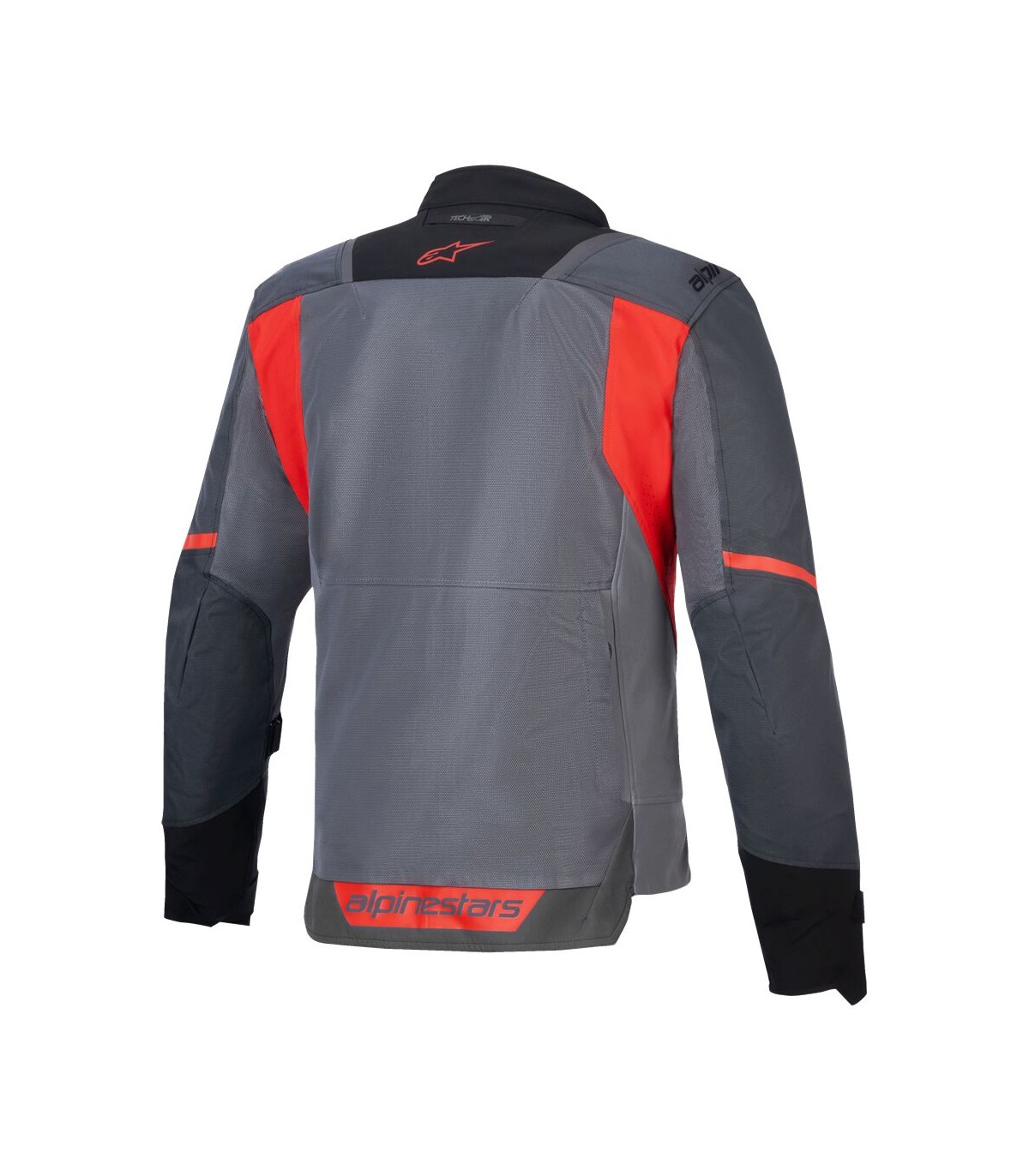 ST-2 Air JacketTouring adventure jacket that delivers superior airflow and protection in a sleek modern design.Stretch softshell base construction is lightweight and comfortable. High tear resistance Ripstop material on shoulders and elbows for further reinforcement.Large, exposed tech mesh panels on the chest, back and underarms, along with strategically placed laser perforations ensure superior and optimized airflow while back mesh helps extract body heat. This combination keeps the rider cool and comfortable during warm weather rides.Modern aesthetic offering a sleek and stylish look thanks to seamless pocket bellows and reflective films for enhanced visibility. Soft comfort collar edging, lengthened lower back edge following the ergonomic contours of the rider's position and zippered pants attachment enhance jacket's functionality and comfort. Customizable fit with volume adjustment features on the biceps for personalized fit.Chest pocket, two lateral pockets and a back pocket offer convenient storage space for essentials.Alpinestars Nucleon Flex Plus Protectors on the elbows and shoulders provide impact protection while maintaining flexibility and comfort.Tech-Air® Ready.EN 17092-3:2020