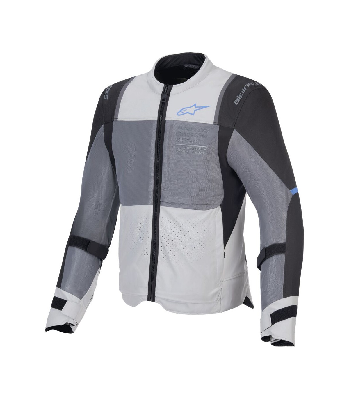 ST-2 Air JacketTouring adventure jacket that delivers superior airflow and protection in a sleek modern design.Stretch softshell base construction is lightweight and comfortable. High tear resistance Ripstop material on shoulders and elbows for further reinforcement.Large, exposed tech mesh panels on the chest, back and underarms, along with strategically placed laser perforations ensure superior and optimized airflow while back mesh helps extract body heat. This combination keeps the rider cool and comfortable during warm weather rides.Modern aesthetic offering a sleek and stylish look thanks to seamless pocket bellows and reflective films for enhanced visibility. Soft comfort collar edging, lengthened lower back edge following the ergonomic contours of the rider's position and zippered pants attachment enhance jacket's functionality and comfort. Customizable fit with volume adjustment features on the biceps for personalized fit.Chest pocket, two lateral pockets and a back pocket offer convenient storage space for essentials.Alpinestars Nucleon Flex Plus Protectors on the elbows and shoulders provide impact protection while maintaining flexibility and comfort.Tech-Air® Ready.EN 17092-3:2020