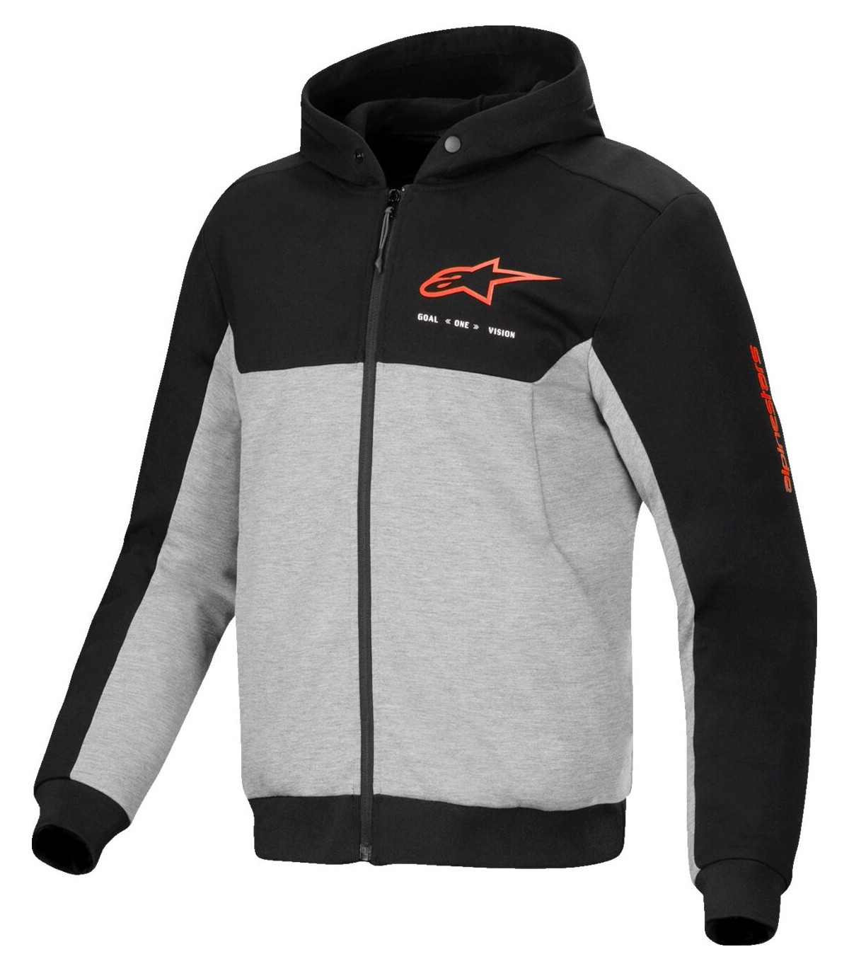 Chrome v2 Sport HoodieExcellent abrasion resistance thanks to the aramidic reinforcements on the shoulders and elbowsEquipped with Nucleon Flex Plus protectors on the shoulders and elbows for superior impact protectionEvolved fit designed for a modern athletic silhouette, while still maintaining enhanced levels of comfort and fitOptimized for comfort and freedom of movement without sacrificing style or performanceFeatures a cordless hood with a snap collar button to tighten the hood securely around the neck while riding, providing added protection from the elementsThe back snap hood connection keeps the hood stable when not in use, preventing it from flapping in the wind during a rideTech fleece main construction for the optimum blend of durability, comfort and light weightDual hand pockets with zippered compartments for safe and secure storage of essentialsOne waterproof pocket for added protection against moisture and rainTech-Air® ReadyEN 17092-4:2020